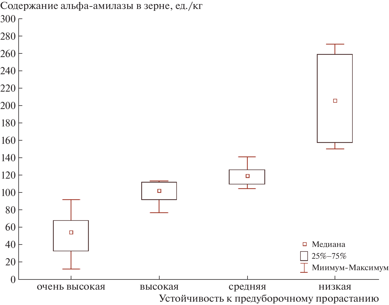 Triticale grain crop is promising for cultivation in various regions of central Russia. Stable yield, high resistance to adverse conditions, allow us to consider this cereal plant as a reliable source of food production. The purpose of this study was to quantify the content of active α-amylase in triticale grain to provide a forecast of agrotechnical measures. The analysis of the quantitative content of α-amylase was carried out on a laboratory spectrofluorimeter using standard bioassays conducted on the basis of a set of reagents for determining the activity of α-amylase in blood serum and urine; the conversion factor for calculating enzyme activity was calculated using a multiparametric calibrator of biochemical analyzers. To improve the methodology for the determination of α-amylase in real samples of plant raw materials, flour of winter triticale varieties grown in the field was used. Based on the results of measuring the activity of α-amylase in triticale grain, a comparative assessment of the enzyme content in the flour of grain crops of 2020 and 2021 was carried out; the dependence of pre-harvest seed germination on the content of α-amylase in grain of various varieties, lines and hybrids was shown. Based on the data obtained on the content of α-amylase in triticale grain, a comparative assessment of the characteristics of pre-harvest seed germination was carried out. The indicator of the quantitative content of α-amylase can be recommended for use in the diagnosis of pre-harvest germination of grain, as well as in breeding work when creating new varieties of grain crops.