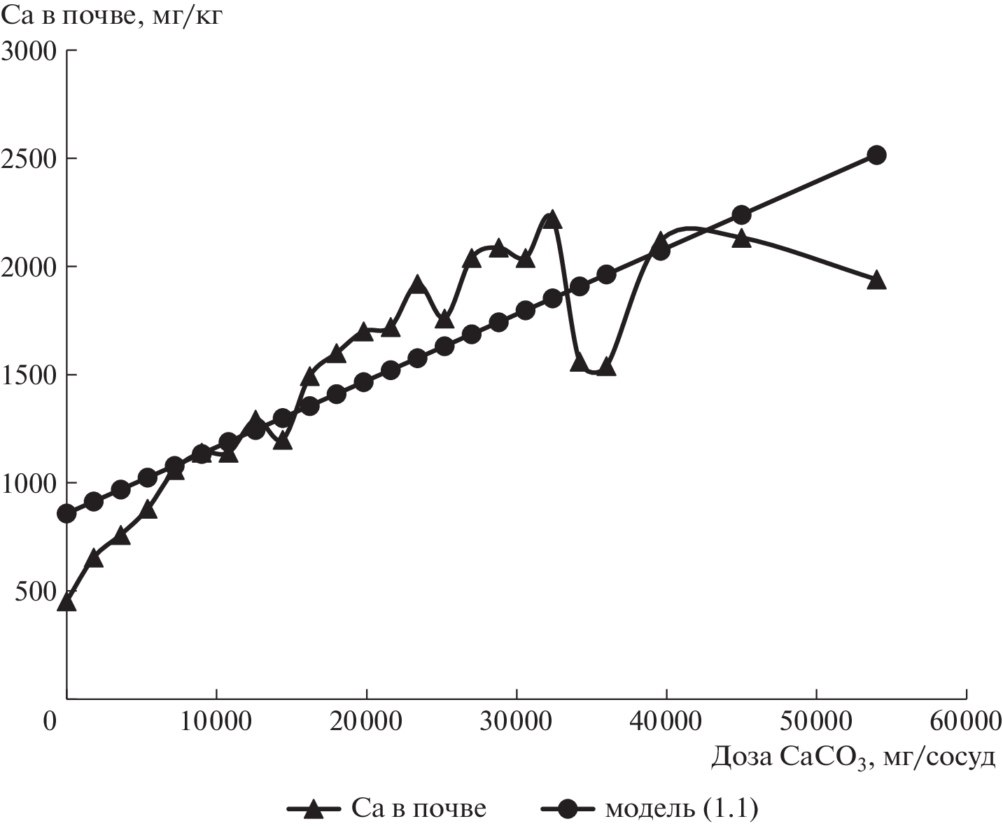 В 24-вариантном вегетационном прецизионном опыте, заложенном на кислой дерново-подзолистой супесчаной почве, мелиорированной конверсионным мелом (КМ) в широком интервале доз, установлено влияние известкования на содержание доступного для растений кальция в почве и его транслокацию в ткани рапса. Результаты свидетельствовали, что рапс является экологически пластичным видом растений. Возрастание количества внесенного мела от 0.1 до 3-х полных доз, рассчитанных по гидролитической кислотности, привело к увеличению концентрации Ca в рапсе в год известкования от 0.81 до 3.14%. Разработаны эмпирические зависимости концентрации кальция в почве и растениях от дозы применения мела. Рассмотрены 3 подхода к анализу экспериментальных данных, описывающие взаимосвязь содержания кальция в почве с его накоплением в тканях растений. Показано, что искусственное усреднение данных содержания кальция в почве при одинаковой дозе применения мелиоранта в отдельных повторностях приводило к потере информации, что отражалось в статистических характеристиках построенных эмпирических моделей.