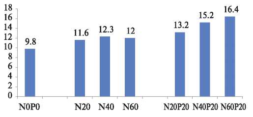 При анализе содержания нитратного азота в 3-метровом слое почвы в 2015 г. обнаружено, что при одной и той же дозе внесения N40 потери от вымывания нитратов существенно снижались, если азот вносили в сочетании с фосфором (рис. 2).