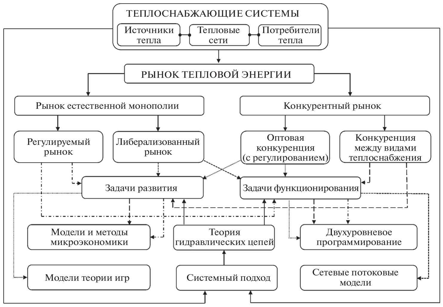 Heat supply is the most important area of energy services provided to a wide range of consumers. This industry determines the well-being of society, social stability and competitiveness of the economies of many countries of the world. The processes of energy liberalization that began in the early 1990s led to the emergence of new forms of heat supply management based on market interaction among producers and consumers of heat energy. In market conditions, the problem of optimizing heat supply systems becomes much more complicated, and its structuring becomes multivariate depending on the characteristics of the industry organization. To solve the problems of optimal functioning and development of heat supply systems in changing conditions, along with existing optimization methods, it becomes necessary to use new approaches focused on solving problems in some specific uncertain situations characterized by conflicting interests of the parties, and often defined as conflict. The paper presents a comprehensive scientific and methodological approach based on mathematical modeling for solving problems of managing the development and operation of heat supply systems in a market economy.
