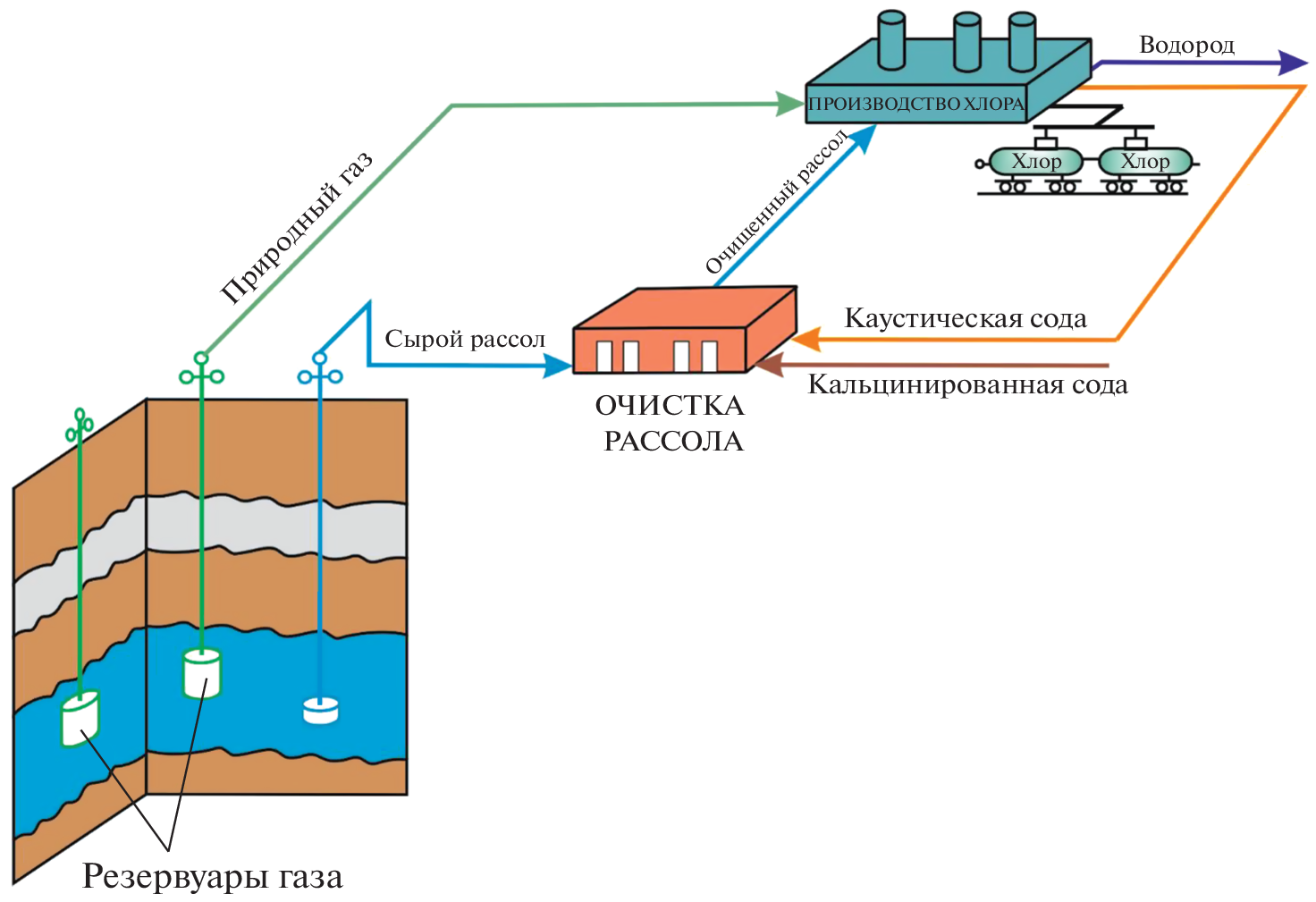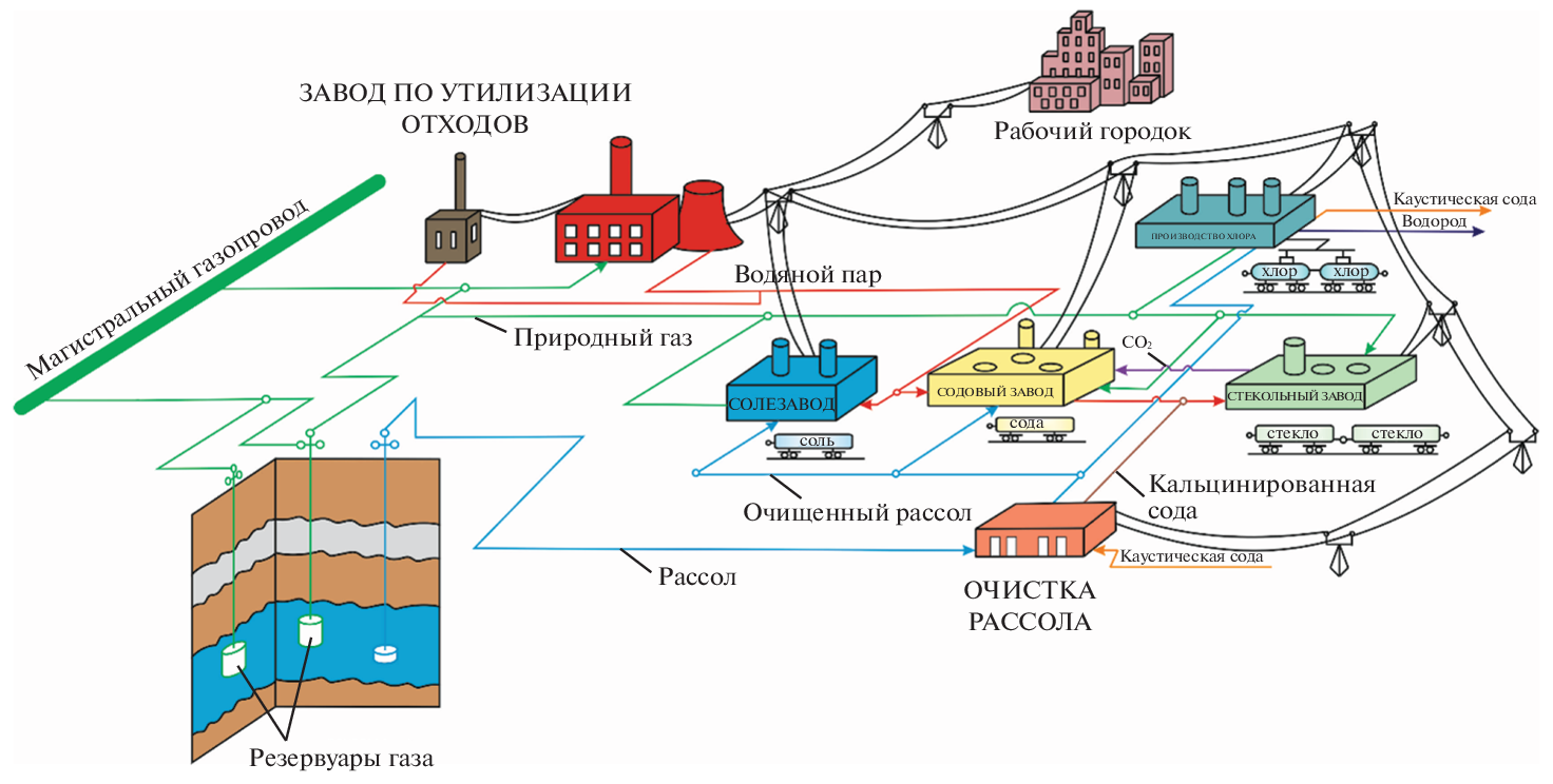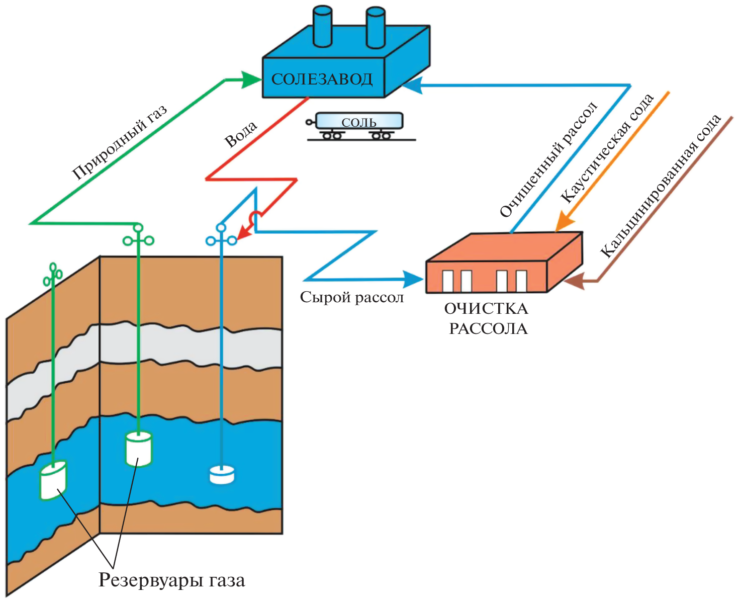 The article describes the relevant issues associated with the reduction of capex and opex of large-scale underground accumulators of gas and liquid energy carriers by commercializing the stages of their construction and operation. It is shown that during the construction of underground storage, the generated construction brine, which is a waste product, can be a raw material for the creation of products of high consumer value for the country’s economy. Technological schemes for the production of economically useful products in cooperation with the process of constructing underground storage in rock salt deposits and the operation of an underground accumulator of natural gas are presented. All the technological schemes are developed based on highly efficient production of common and technical salt, calcined soda, chlorine, glass, hydrogen (methane-hydrogen mixture), ammonia, carbamide. It is shown that the implementation of the developed schemes of cooperation of technological complexes for the production of essential and useful for the country’s economy products significantly reduces total capital and operational costs and, consequently, the cost of the output product.