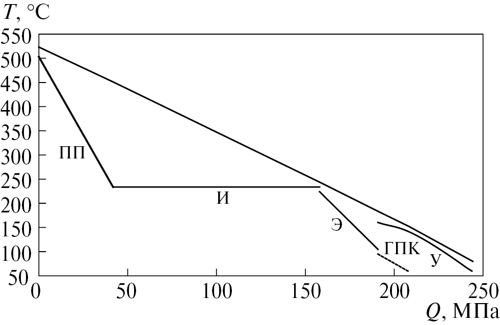Рис. 7. T-Q диаграмма тринарной установки с ГТЭ-160
