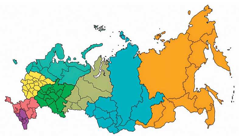 Рис. 2. Деление России на федеральные округа.