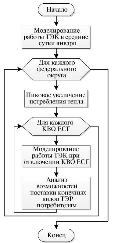 – моделирование потери работоспособности ранее выявленных КВО газовой отрасли (по одному) при каждом сценарии похолодания в федеральных округах с учетом возможностей минимизации недопоставок ТЭР потребителям в рамках работы единого ТЭК; анализ возможных объемов недопоставок тепловой, электрической энергии и газа для прямого потребления по субъектам РФ;