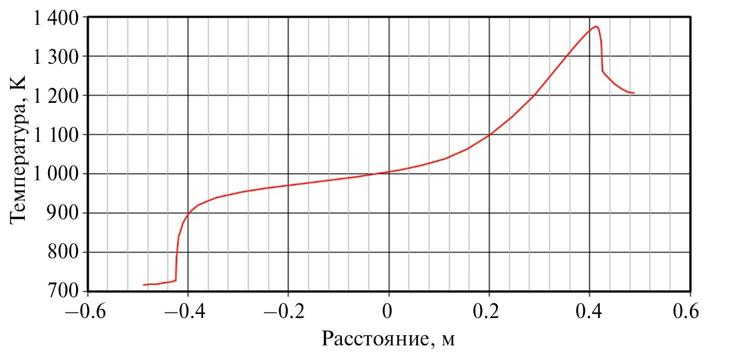 Рис. 10. Профиль температуры вдоль линии “а” (2500 с расчета)