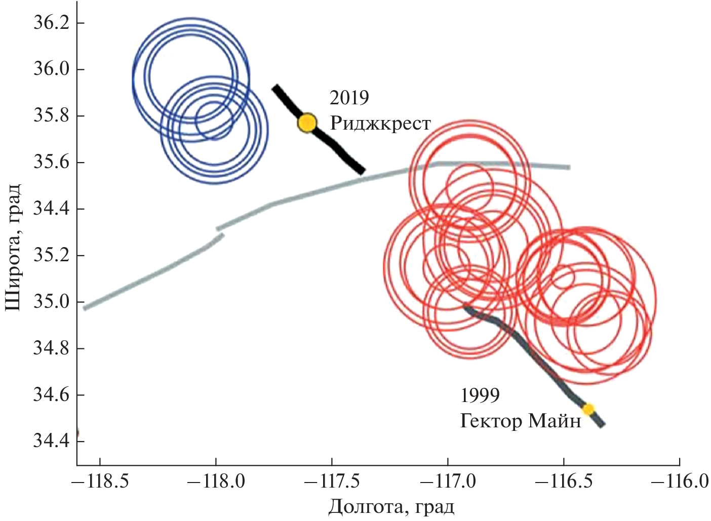 - Yoon C.E., Yoshimitsu N., Ellsworth W.L., Beroza G.C. Foreshocks and mainshock nucleation of the 1999 Mw 7.1 Hector Mine, California, earthquake // J. Geophysical Research. Solid Earth. 2019. V. 124. P. 1569–1582.