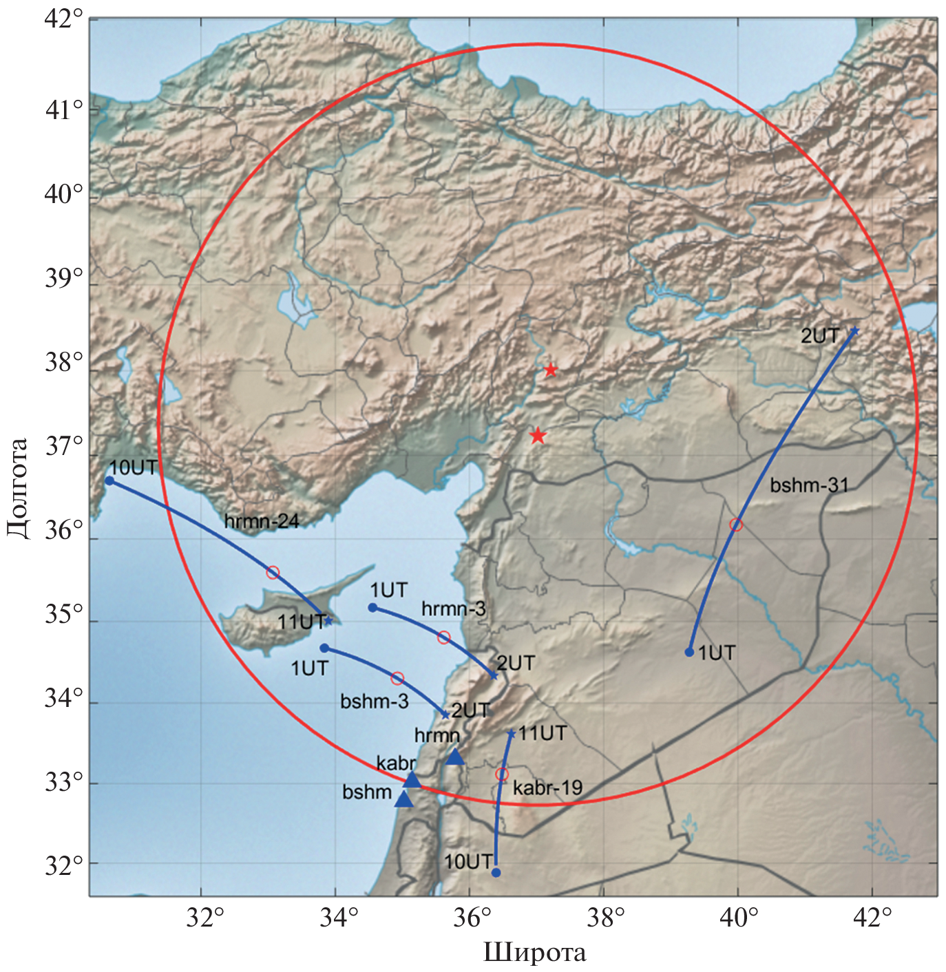 Abstract—Ground-based magnetometers and ionospheric radio probing by means of GPS were used to analyze and interpret specific variations of the geomagnetic field and the total electron content of the ionosphere during strong catastrophic earthquakes in Turkey on February 6, 2023. It is shown that the ionospheric responses to these earthquakes recorded at distances of 1200–1600 km from the epicentre in the lower ionosphere and at distances of up to 500 km from the epicentre in the upper ionosphere can be interpreted in terms of the propagation of the Rayleigh seismic wave and atmospheric waves – shock, acoustic and internal, that is, those waves that are generated by the earthquake itself. The energy of seismic events was estimated from the ionospheric response.