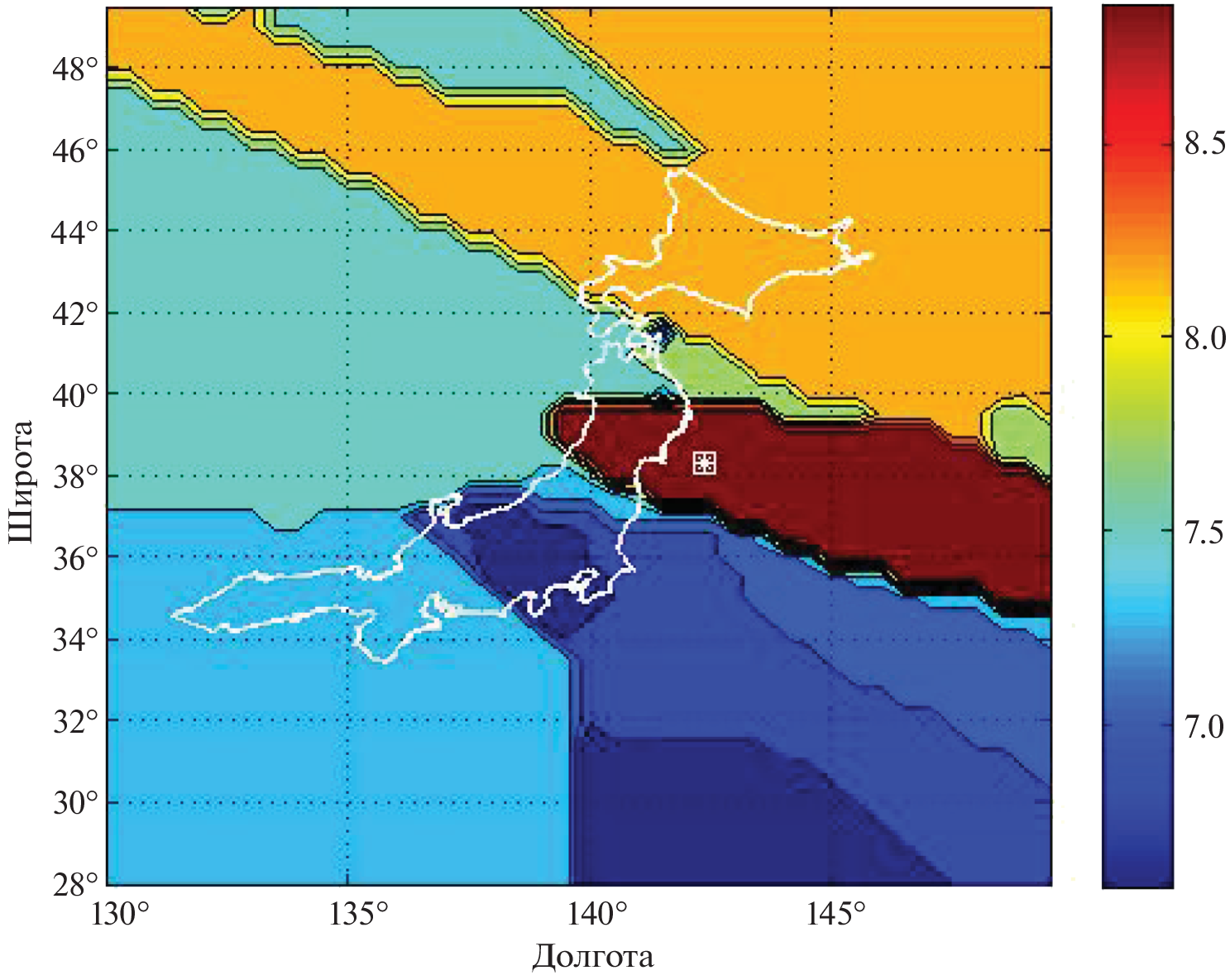 —This study is devoted to application of some new statistical methods to analysis of the spatial struc-ture of the seismic field in the seismically active region in the Japan region bounded by the following coordinates: 28°–50° north latitude, 130°–150° east longitude. The estimates of the seismic flux by using the k nearest neighbors method for the magnitude interval m ≥ 5.2. The highest values of intensity of about 10–4 \(\frac{1}{{{\text{year}}{\kern 1pt} - {\kern 1pt} {\text{k}}{{{\text{m}}}^{{\text{2}}}}}}\) are located at depths of down to 100 km and manifest themselves in the neighborhood of the Tohoku megathrust earthquake. The spatial resolution of the intensity estimates is ranging from 33–50 km in the regions with a high intensity to 100 км and larger in the zones of weak intensity. It has been shown that the seismic filed parameters – intensity λ, slope of the graph of repetition β, maximum possible magnitude m1 – have different scales of their spatial variability and, thus, it is necessary to apply different scales of spatial averaging to them. Based on the Gutenberg—Richter truncated distribution model, the estimates are obtained for the slope of the graph of repetition (b-value) and the upper boundary of the distribution m1. An original method is proposed for determining the optimal averaging radius for an arbitrary cell of the space grid. The method is based on the use of the statistical coefficient of variation of the corresponding parameter. For the considered region, the estimate of the maximum possible magnitude Мmax = 9.60 ± 0.41 was obtained with consideration of the correction for bias.