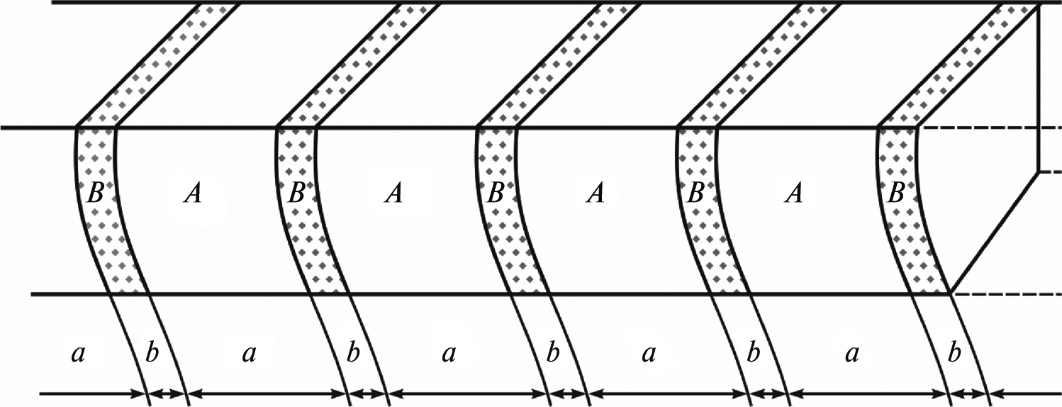 В модели [Bella et al., 1990] блоки (A, a) земной коры разделены “мягкими” ослабленными переходными зонами (B, b) – прослойками (рис. 6), которые могут представлять собой трещиноватые флюидонасыщенные среды с модулями упругости намного меньшими, чем модули материала блоков. Авторы модифицировали неупругую модель Максвелла и предложили следующее соотношение для связи напряжение–деформация [Bella et al., 1990]: