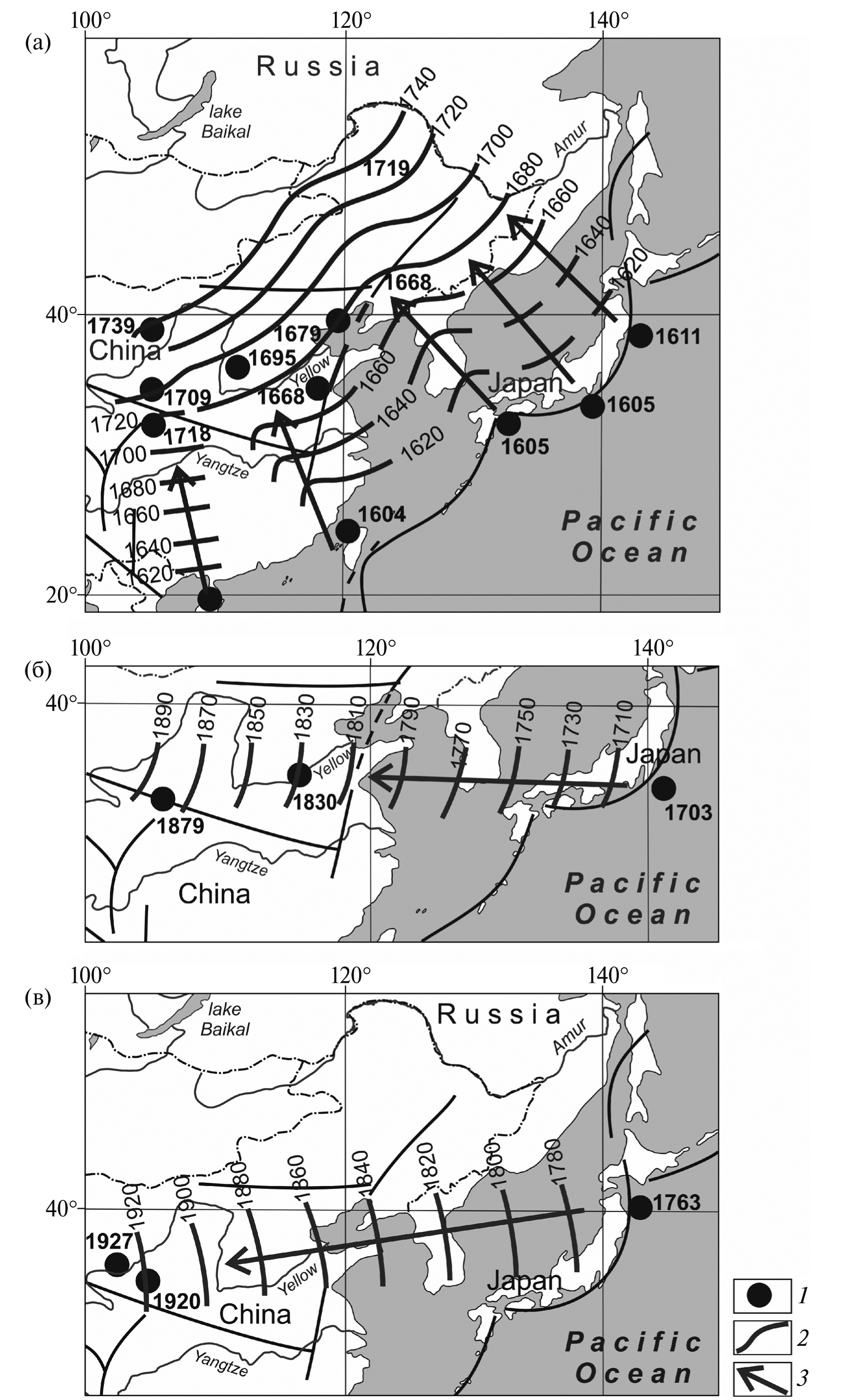 - Zhao G., Yao L. Earthquake migration in East Asia mainland (I) – the migration of huge earthquakes and volcanic activity from West Pacific trench to the Chinese mainland // Acta Seismologica Sinica. 1995. V. 8. № 4. P. 541–549.