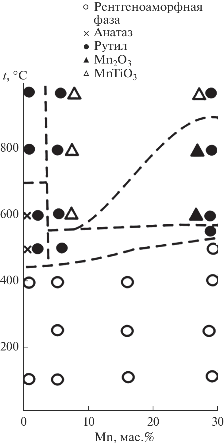 Синтезированы фотокаталитически активные материалы на основе титана и марганца. Изучены особенности формирования полученных материалов, их физико-химические и фотокаталитические свойства. Показано, что модифицирование TiO2 марганцем приводит к получению нанодисперсных порошков (4.8–2550 нм) со свободной удельной поверхностью от 0.56 до 479 м2/г. Синтезированные порошки обладают высокой фотокаталитической активностью (ФКА) при облучении видимым светом, превышающей ФКА немодифицированного TiO2 схожего генезиса и промышленного диоксида титана Р-25 фирмы Degussa. Повышенный уровень ФКА наблюдается для образцов, модифицированных марганцем, одновременно содержащих анатаз и рутил, без обособления отдельных фаз марганца.