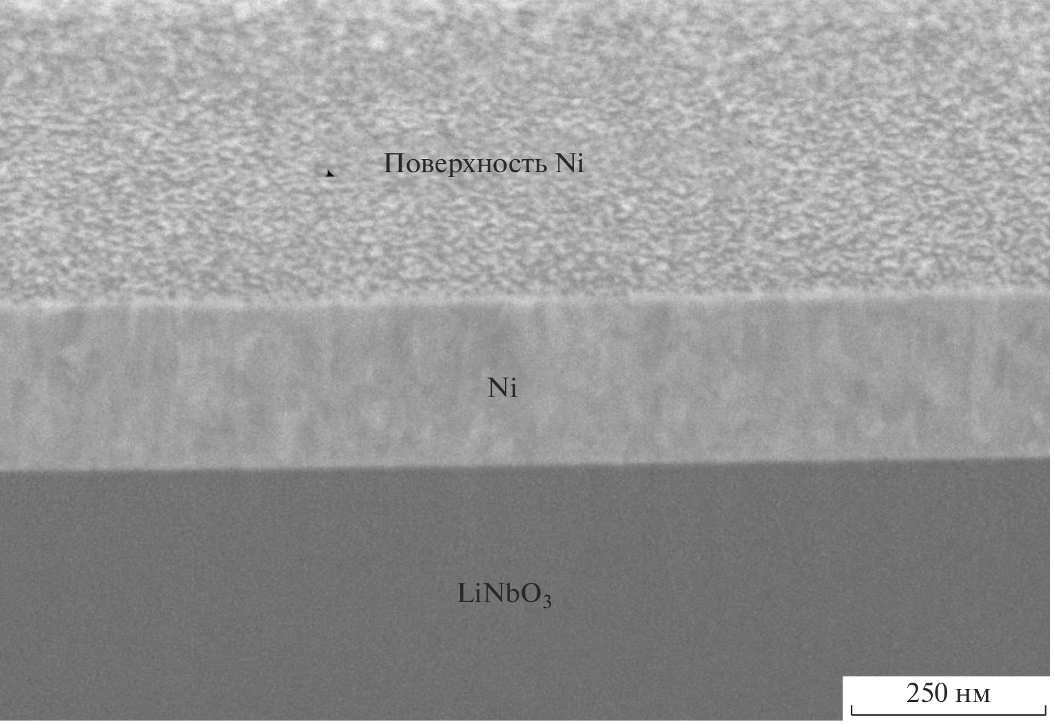 Layered structures in the form of submicron-thick nickel layers on single-crystal lithium niobate (LiNbO3) ferroelectric substrates have been produced by ion beam sputter deposition. At room temperature, the structures exhibit an interfacial magnetoelectric effect, whose largest magnitude is 108 mV/A in a transverse configuration of the magnetic and electric fields and 4 mV/A in a longitudinal configuration. Analysis of mechanical strain leads us to conclude that the interface makes a considerable contribution to magnetoelectric interaction in the Ni/LiNbO3 structures obtained in this study. The materials can find application in designing piezoelectric devices and acoustic, optical, and spin wave electronics.