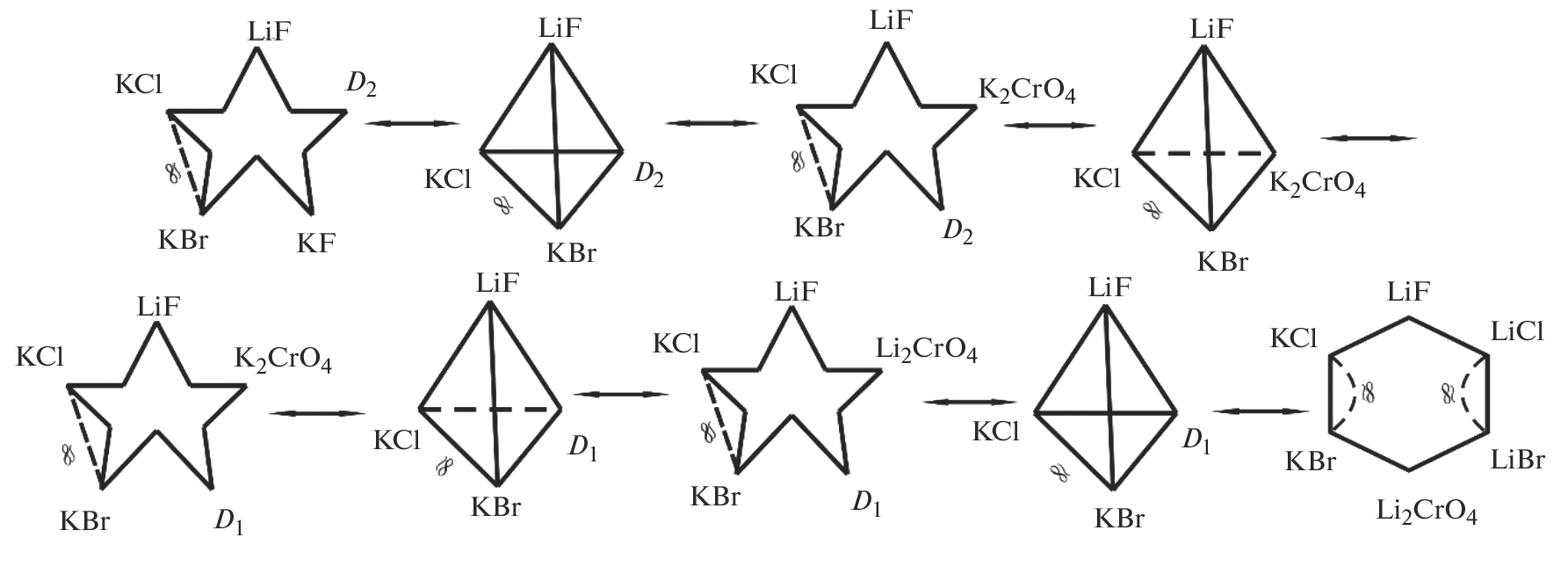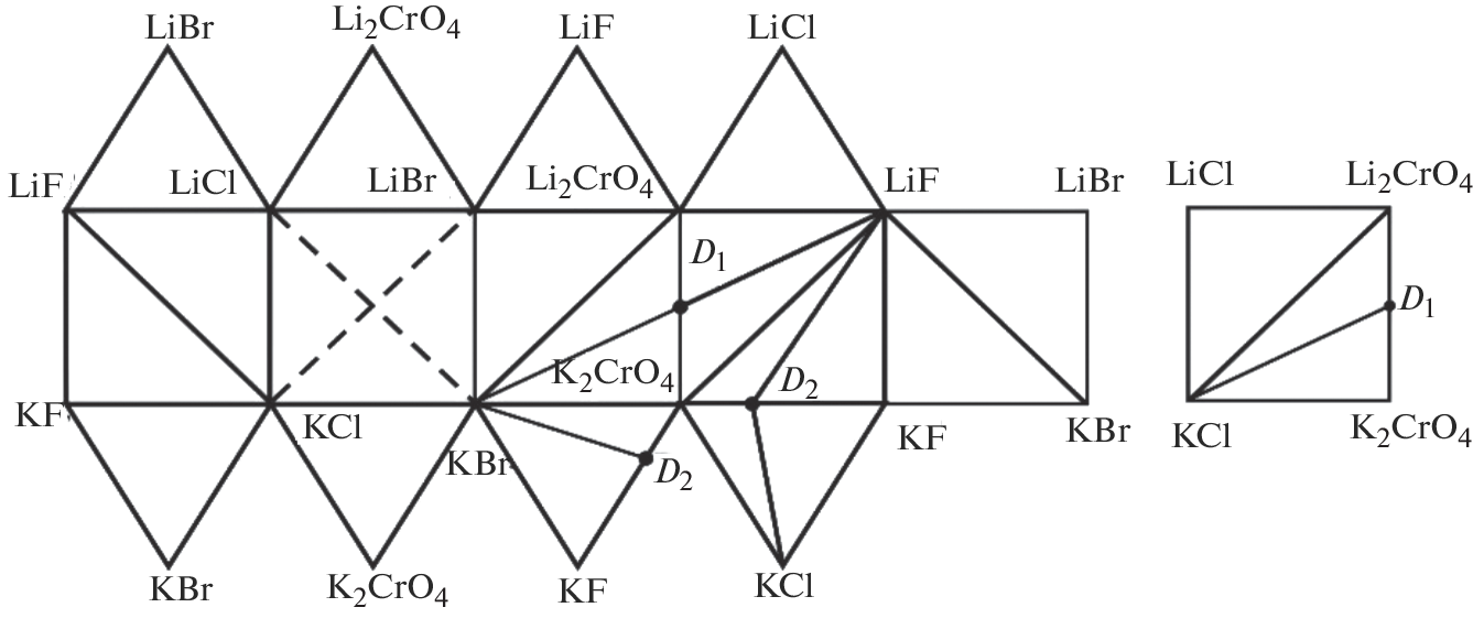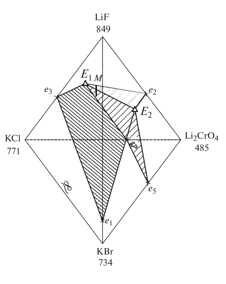 - Демина М.А., Гаркушин И.К., Ненашева А.В. и др. Фазовые равновесия в стабильном тетраэдре LiF–LiBr–Li2CrO4–KBr четырехкомпонентной взаимной системы Li,K||F,Br,CrO4 // Журн. неорган. химии. 2016. Т. 61. № 5. С. 670–676. https://doi.org/10.7868/S0044457X16050056