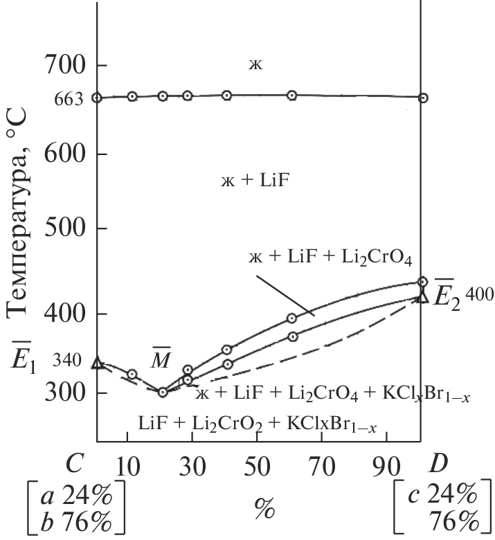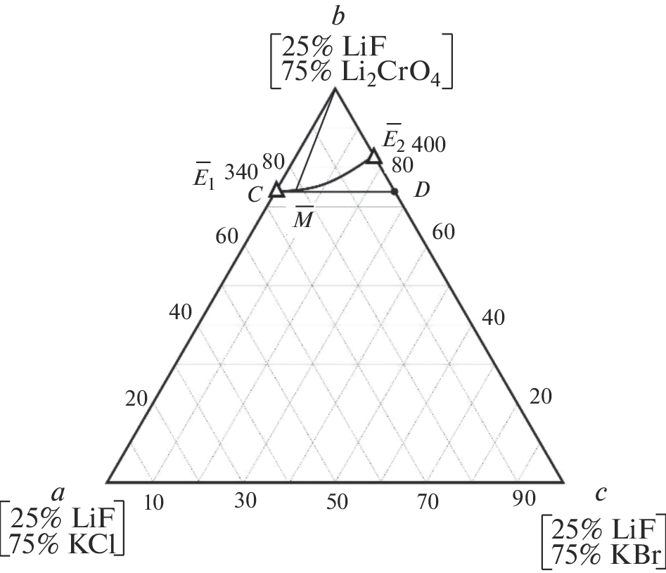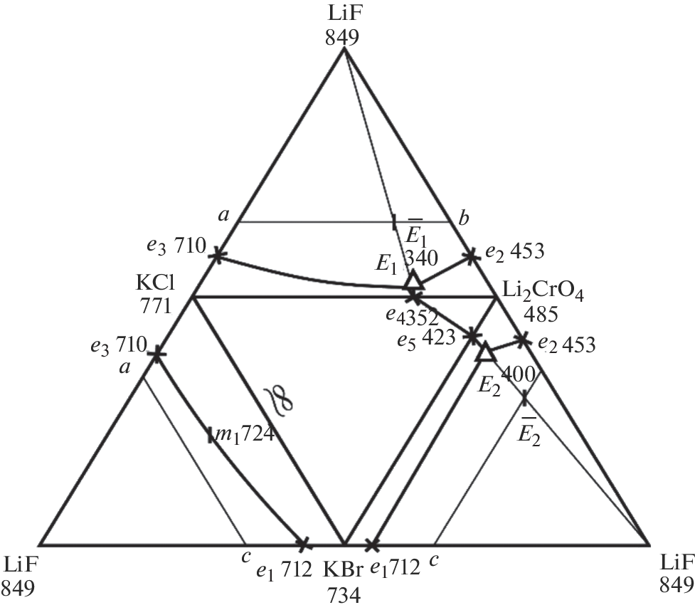 - Гаркушин И.К., Демина М.А., Чудова А.А. и др. Исследование стабильных треугольников LiF–KBr–Li2CrO4 и LiF–KBr–K2CrO4 четырехкомпонентной взаимной системы из фторидов, бромидов и хроматов лития и калия // Журн. неорган. химии. 2015. Т. 60. № 1. С. 112. https://doi.org/10.7868/S0044457X15010043
