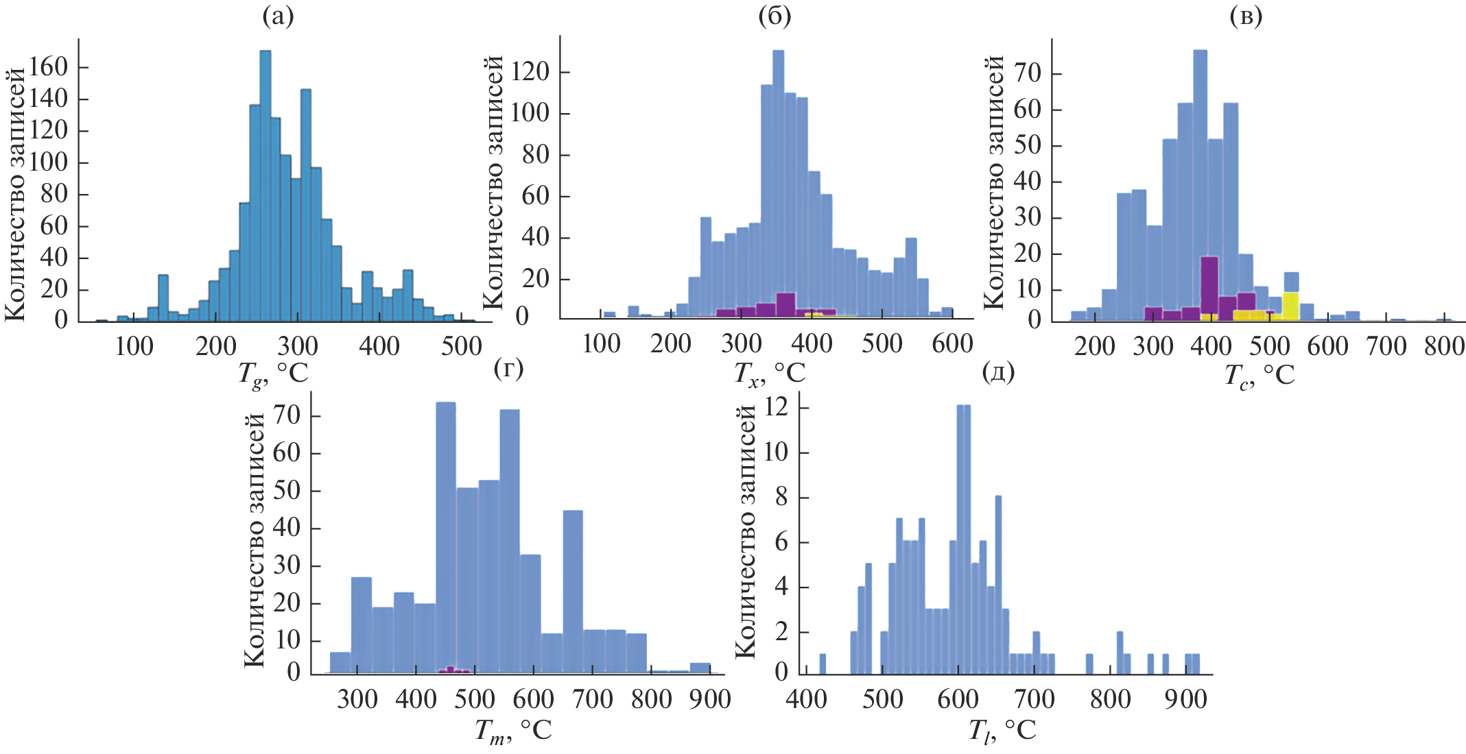 С использованием контент-анализа и среды программирования Python выявлен ряд закономерностей, определяющих термические свойства фторидных и модифицированных фторидных стекол. Проведена классификация составов по температуре стеклования Tg и разности температур начала кристаллизации Tx и стеклования Tx–Tg. Установлено, что использование правила Каузмана для фторидных и модифицированных другими галогенами фторидных стекол более надежно при использовании соотношения Tg/Tm по сравнению с соотношением Tg/Tl. Изучен качественный характер влияния модификации состава по аниону на характеристические температуры (температуру стеклования Tg, температуру начала кристаллизации Tx, температуру пика кристаллизации Tc, температуру начала плавления Tm и температуру ликвидуса Tl) и критерии устойчивости к кристаллизации (критерий Груби K, критерий Саади–Пуле S, приведенный интервал термической стабильности H, интервал термической стабильности Tx–Tg, приведенные температуры стеклования Tg/Tm и Tg/Tl).