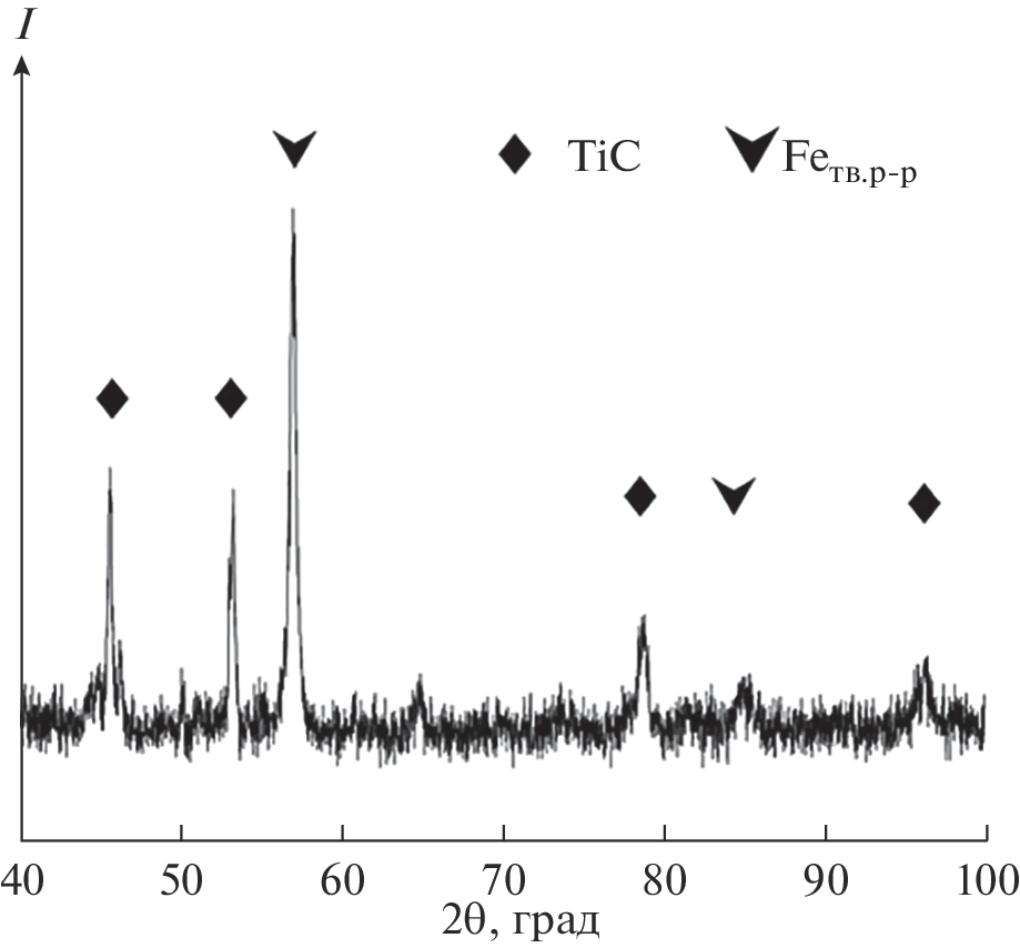 T-590 commercially available electrodes for wear-resistant claddings and STIM-2/30 electrodes prepared by self-propagating high-temperature synthesis (SHS) extrusion and containing reinforcing titanium carbide particles have been used to produce protective layers on the surface of steel by electric arc cladding. We have determined the phase composition and structure of the clad coatings. The results demonstrate that the microstructure of the coatings produced by cladding with the use of T-590 electrodes is formed by a carbide eutectic. The reinforcing TiC phase in the SHS electrodes has been shown to pass into the clad layer and be uniformly distributed across the entire clad layer, which is accompanied by the formation of an intermediate diffusion layer on the coating–substrate fusion interface. The hardness and microhardness of the clad coatings are a factor of 2–4 higher than those of the steel substrate. Cladding with the use of T-590 electrodes ensures higher hardness of the clad layers, but an increase in the percentage of ferrite in their structure can lead to a decrease in their wear resistance. The coatings produced by cladding with the use of SHS electrodes have a favorable structure capable of ensuring high abrasive wear resistance.