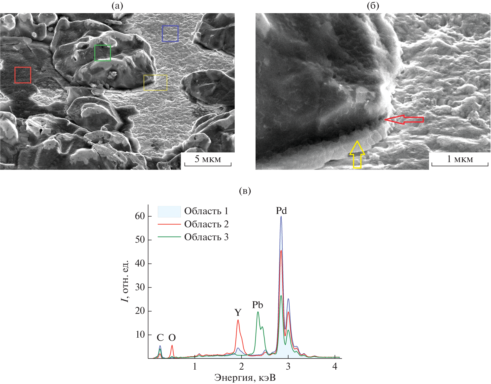 Методами растровой электронной микроскопии и энергодисперсионной рентгеновской спектроскопии изучены процессы адгезии/декогезии для поверхности плотных металлических диффузионных мембран при прямом контакте с водородом. Элементный состав исследуемых образцов – Pd93Y7, Pd100 – хPbх (х = 5, 20) и Pd94Ru6 (мас. %). Выявлена эмиссия свинца с поверхности мембран Pd100 – хPbх и адгезия его к поверхности мембран Pd93Y7. Адгезия частиц иттрия к поверхности мембран палладий–свинец не установлена. Поверхность образцов состава Pd94Ru6 показала устойчивость к процессам адгезии/декогезии.