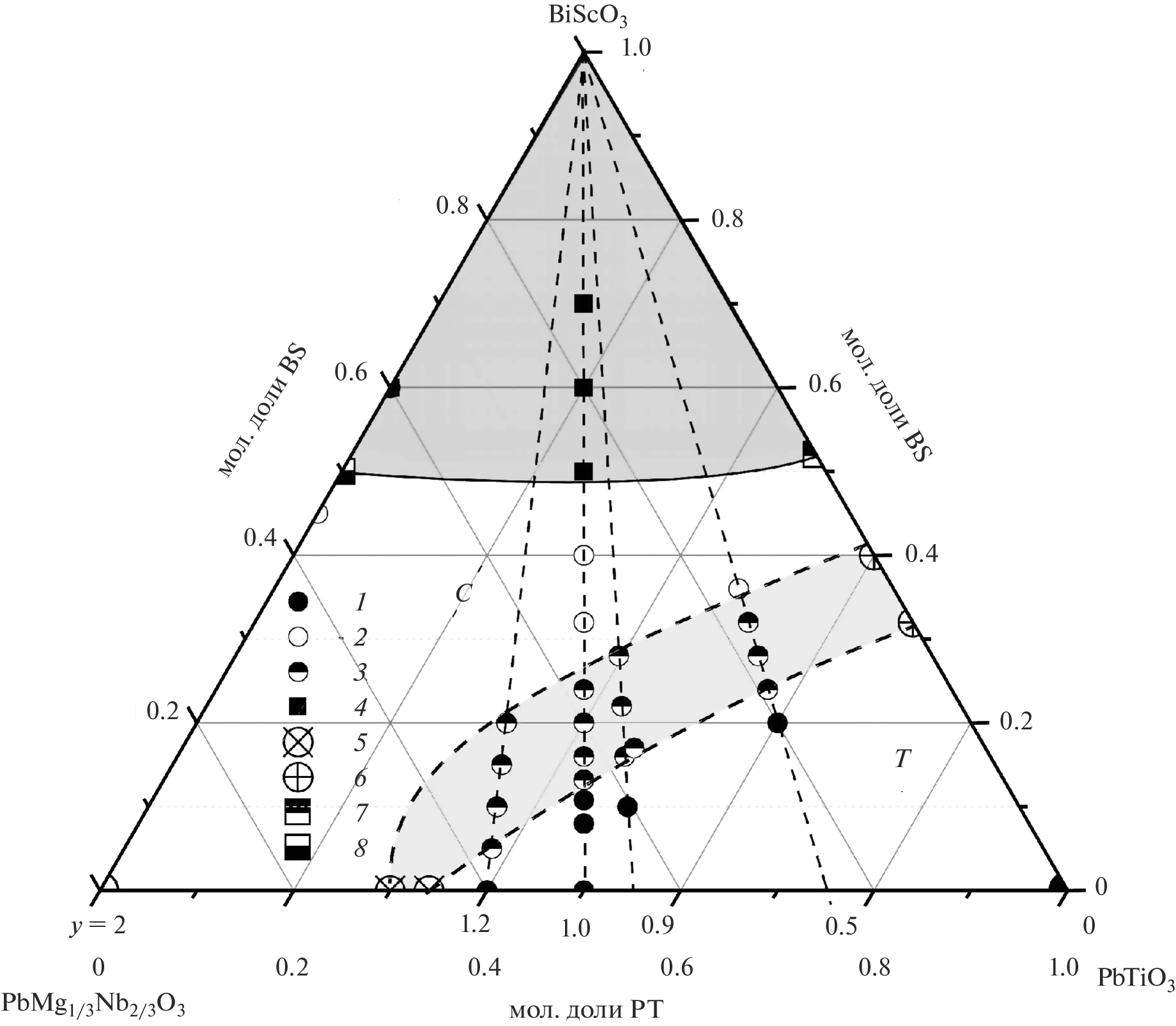 Получение, структурные и электрофизические исследования керамических образцов твердых растворов со структурой перовскита (1 – 2x)BiScO3∙(2 – y)xPbTiO3∙yxPbMg1/3Nb2/3O3
