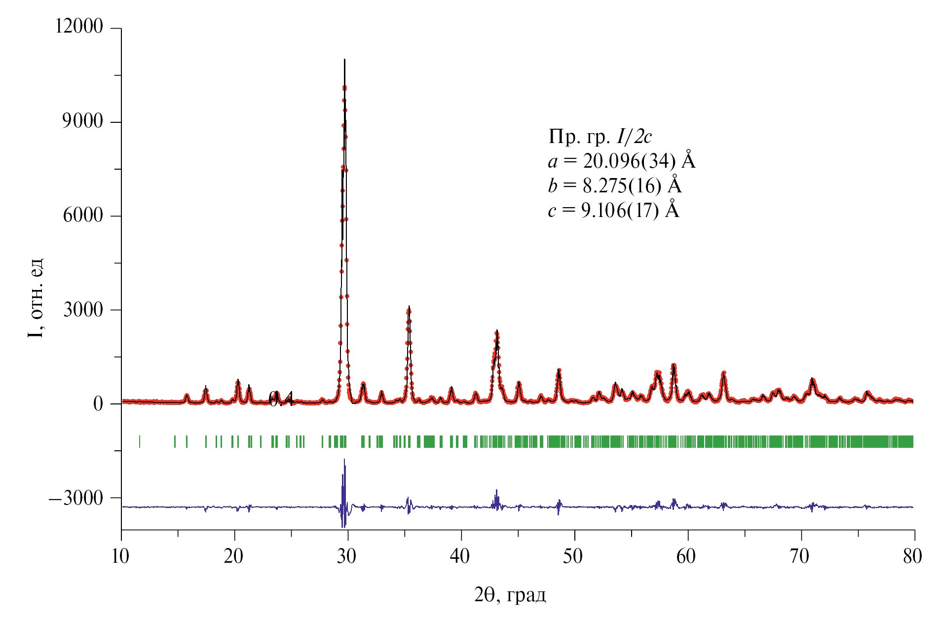 Фазовый состав определяли при комнатной температуре методом рентгеновской дифракции с помощью дифрактометров Shimadzu XRD-7000 (Shimadzu, Япония) (CuKα1-излучение, 2θ = 5°–80°, шаг 0.03°) и STADI-P (STOE, Германия), оснащенного линейным детектором мини-PSD (CuKα1-излучение, 2θ = 5°–120°, шаг 0.02°). Для идентификации фаз использовали базу порошковых стандартов PDF2 (ICDD, США, Release 2016). Параметры решетки определяли методом полнопрофильного анализа Ритвельда с использованием программы FullProf.