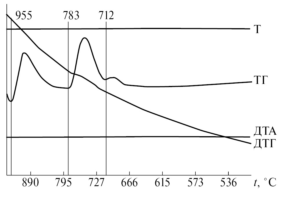 Экспериментальные исследования проводили методом термогравиметрического анализа на дериватографе Q-1200 в режиме контролируемой скорости нагревания 20°С/мин до 1100°С на воздухе в платиновых тиглях. Составы всех смесей, приведенных в работе, выражены в молярных концентрациях эквивалентов. Масса исходных смесей составляла 1 г, точность взвешивания составов на аналитических весах ±0.0001 г.
