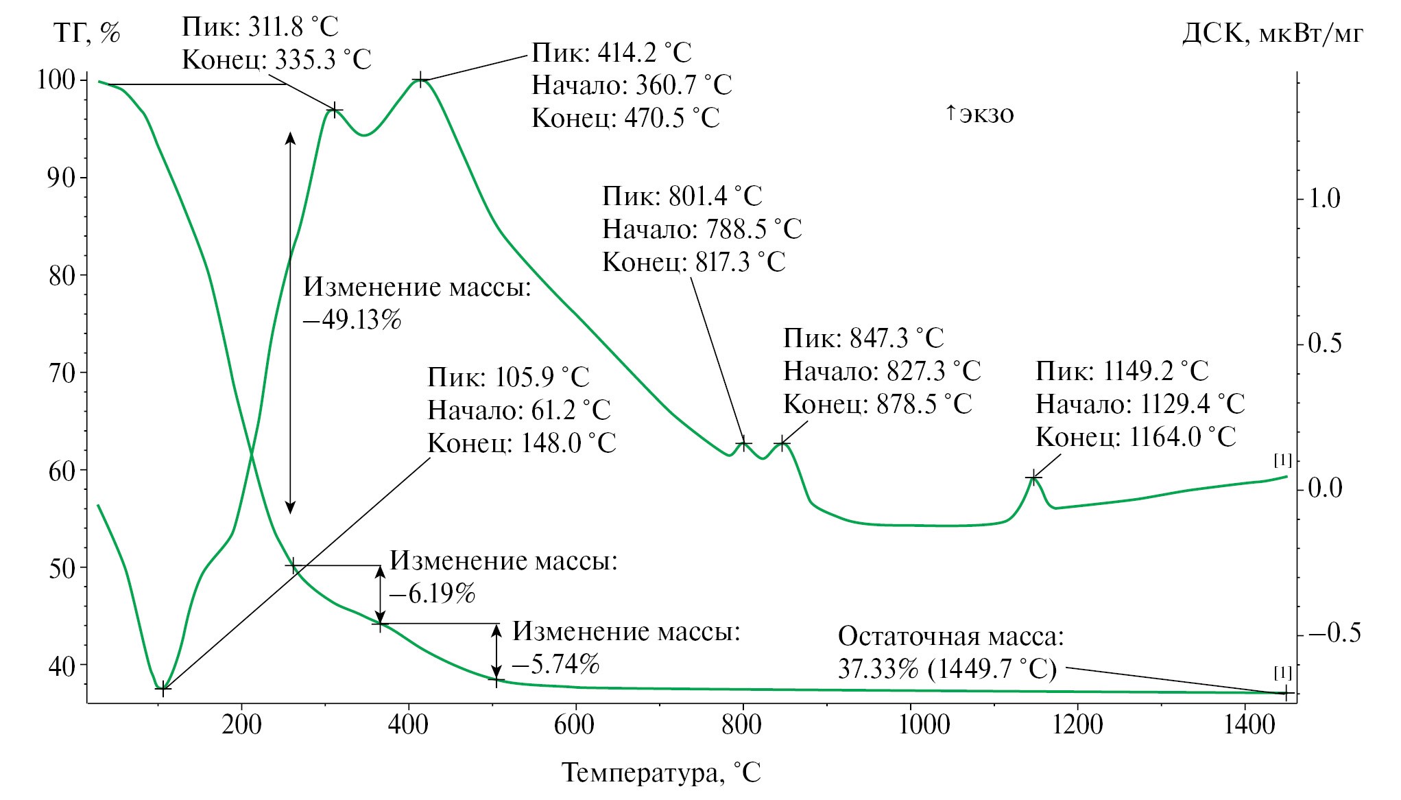 Рис. 3. Результаты термического анализа органоалюмоксана.