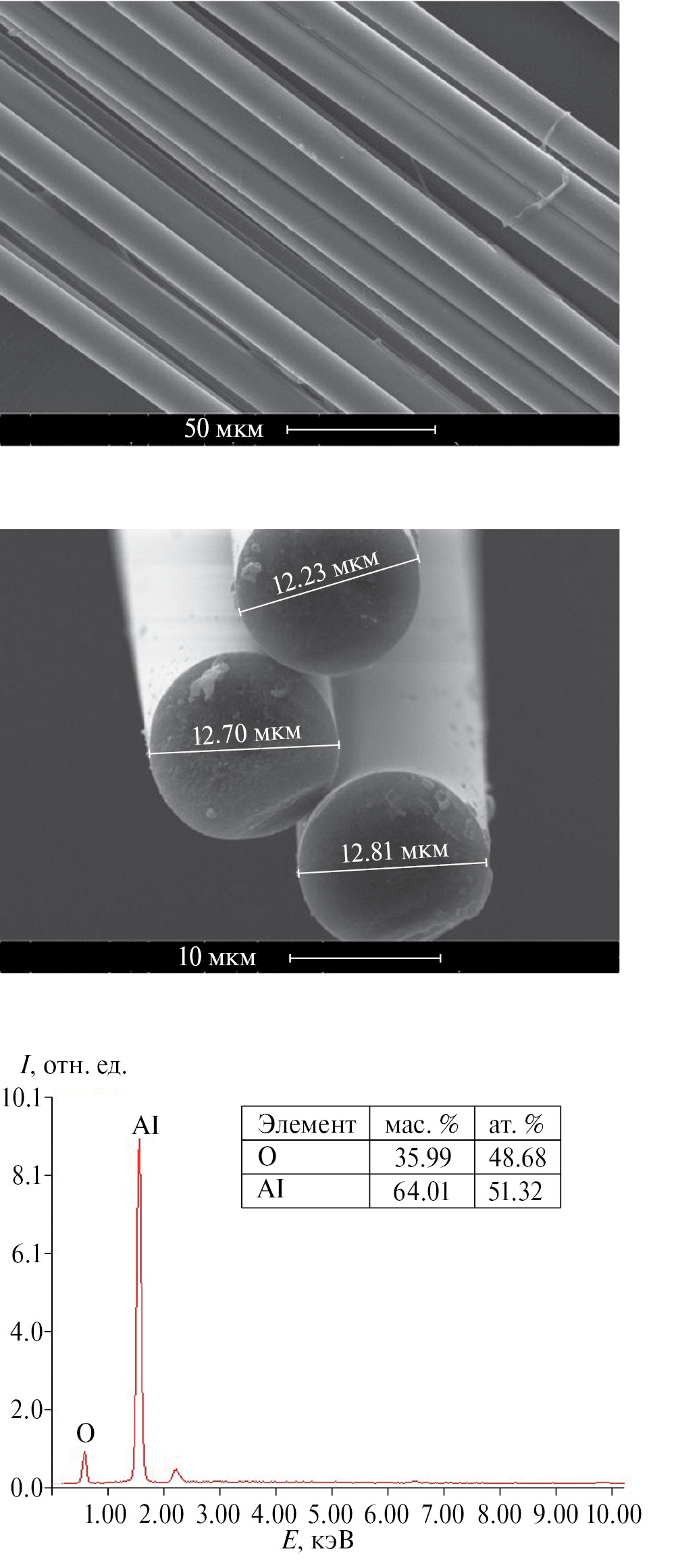 Морфологию поверхности и элементный состав органоалюмоксана, а также микроструктуру межволоконного пространства и элементного состава керамокомпозита изучали с использованием сканирующих электронных микроскопов (СЭМ) FEI Quanta 250 и Philips SEM505, последний оснащен энергодисперсионным детектором SAPHIRE Si(Li) (тип SEM10) и системой захвата изображения Micro Capture SEM3.0M.