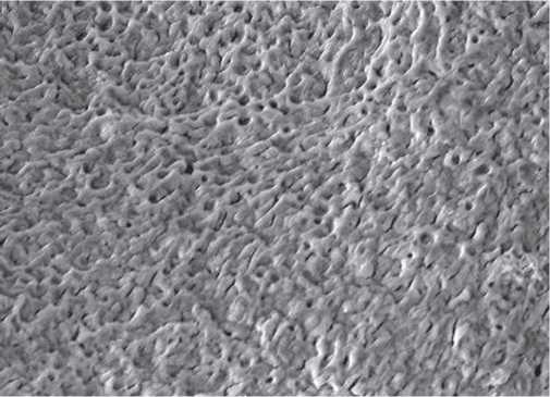Рис. 2. Электронная микрофотография поверхности кристаллов безводного сульфида натрия Na2S.