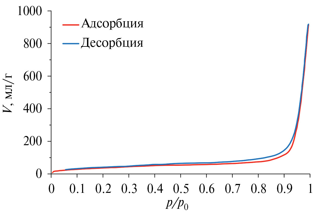 Рис. 8. Изотермы адсорбции–десорбции для наночастиц карбида железа Fe3C.