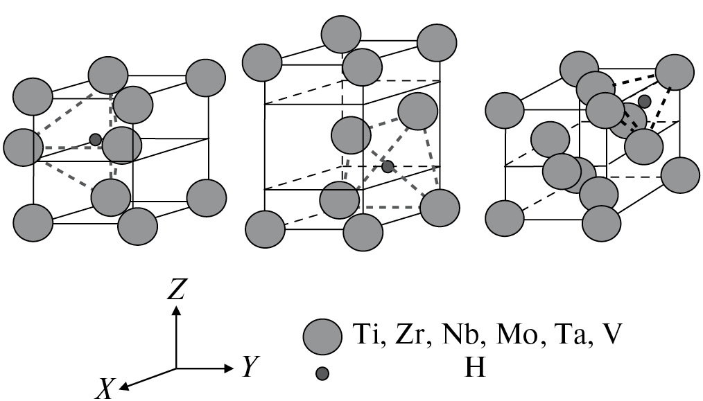 Значительная группа ВЭС представляет собой сплавы с объемно-центрированной кубической решеткой (ОЦК, пр. гр. 229, Imm), содержащие такие компоненты, как титан, цирконий, ниобий, тантал и другие d-металлы. Как было установлено в работе [8], при реакции гидридообразования кубическая объемно-центрированная решетка сплава первоначально трансформируется в тетрагональную (пр. гр. 139, I4/mmm). Это происходит при содержании водорода в пределах 1–2 Н/М (Н/М – количество атомов водорода, приходящихся на один атом металла). При достижении количества водорода в гидриде 2 Н/М или несколько больше тетрагональная решетка переходит в кубическую гранецентрированную со структурой типа флюорита CaF2 (пр. гр. 225, Fmm). В работе [9] изучали водородсорбционые свойства ВЭС на основе титана и циркония. Было установлено, что при увеличении содержания циркония в сплаве стабильность синтезированных гидридных фаз возрастает. Десорбция водорода из гидридов приводит к образованию исходного сплава с ОЦК-решеткой. Однако при значительном содержании циркония образцы гидридов распадаются на две фазы с различными типами решетки.