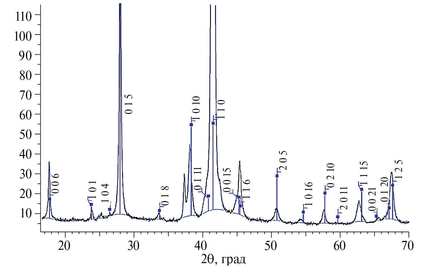 Рис. 1. Дифрактограмма образца Bi2Te2.5Se0.5.