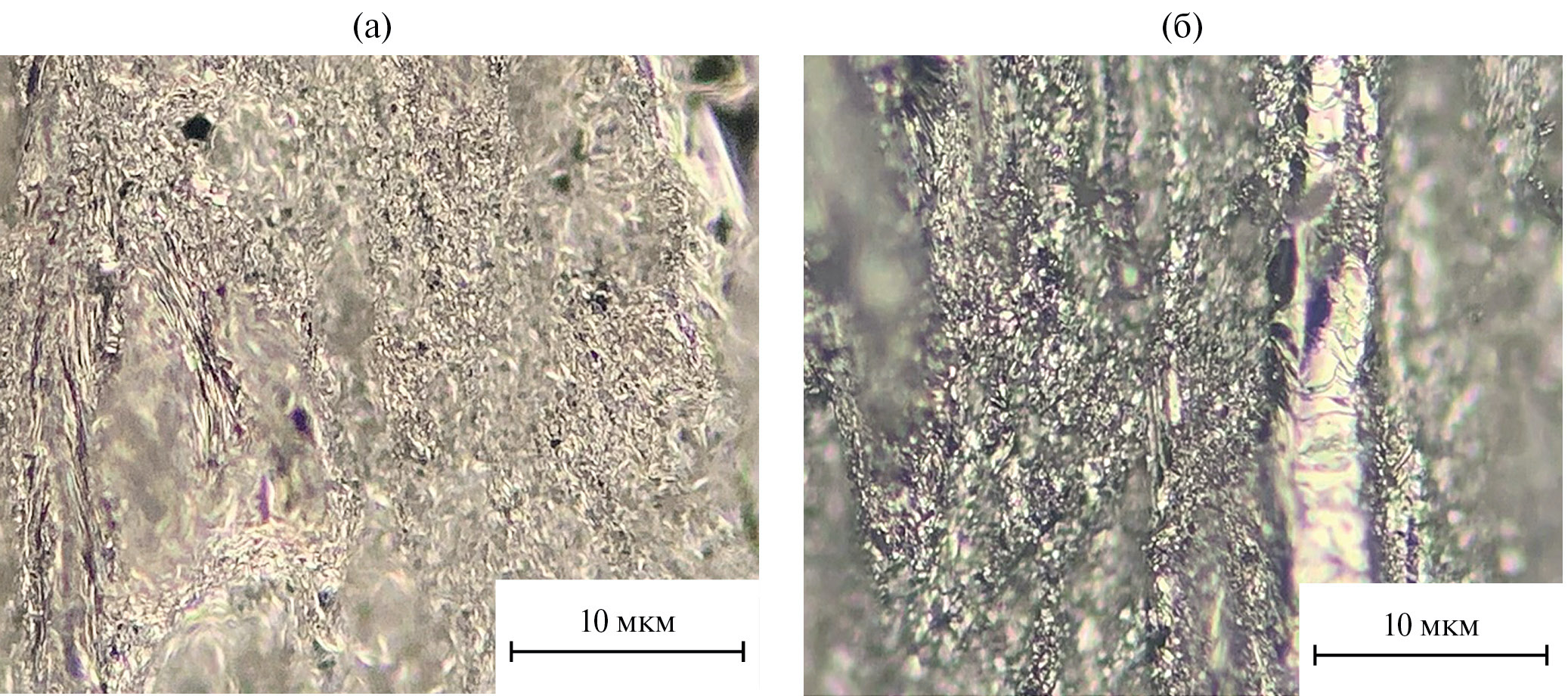Рис. 4. РЭМ-изображения сколов образцов, полученных зонной перекристаллизацией (а) и экструзией (б).