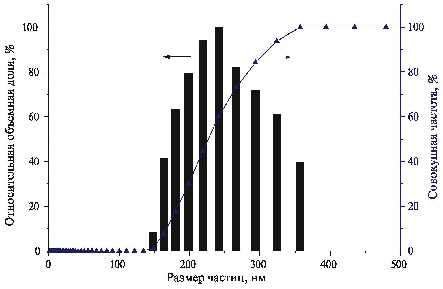 Распределение частиц по размерам определяли на приборе NanoBrook 90Plus Zeta (Brookhaven Instr. Corp., США) методом динамического рассеяния света с предварительным диспергированием частиц в дистиллированной воде с ультразвуковой обработкой.