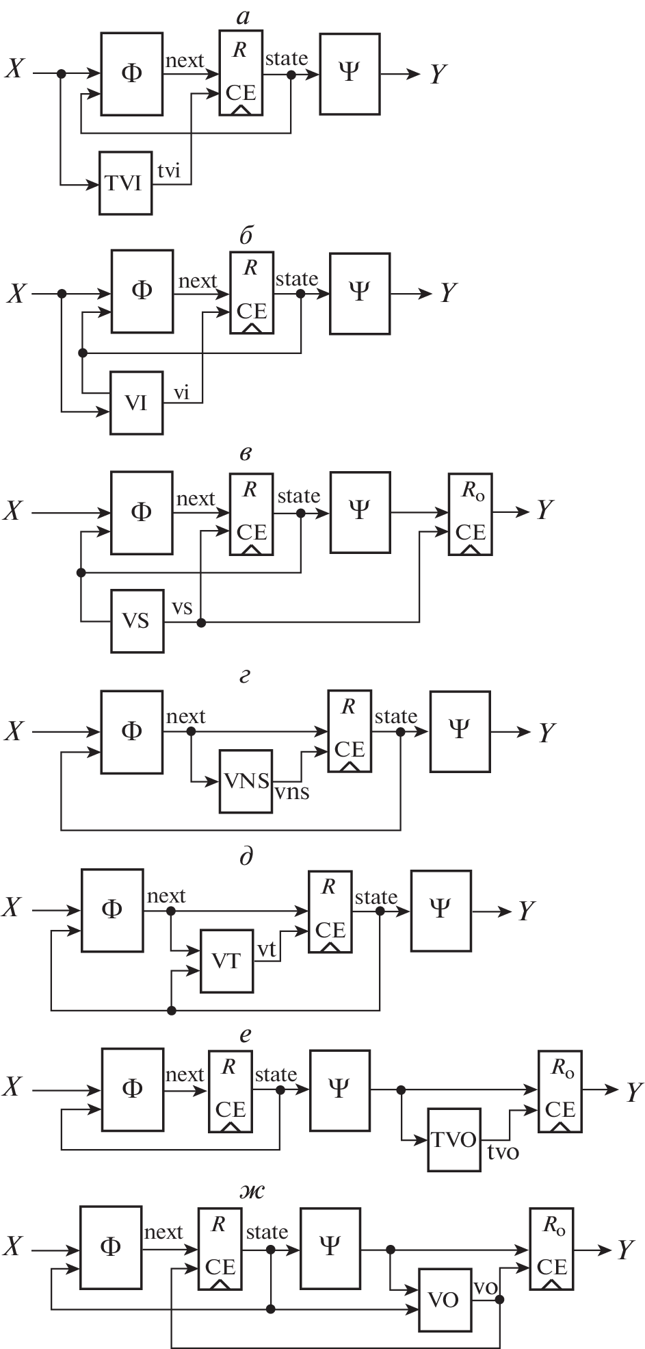 - Климович А.С., Соловьев В.В. Преобразование автомата типа Мили в автомат типа Мура путем расщепления внутренних состояний // Изв. РАН. ТиСУ. 2010. № 6. С. 70–79.