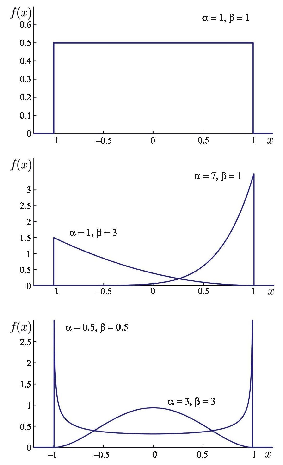 Это обстоятельство, а также способность распределения Пирсона I типа принимать разнообразную форму в зависимости от значений его параметров и (рис. 3) дает основание аппроксимировать условные плотности вероятности в формулах (2.7), (2.8) плотностями вероятности Пирсона I типа: