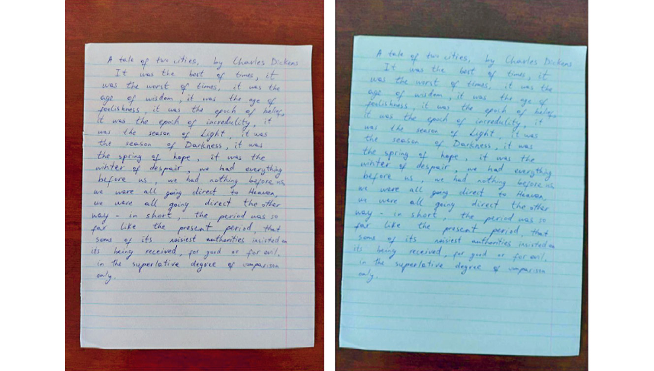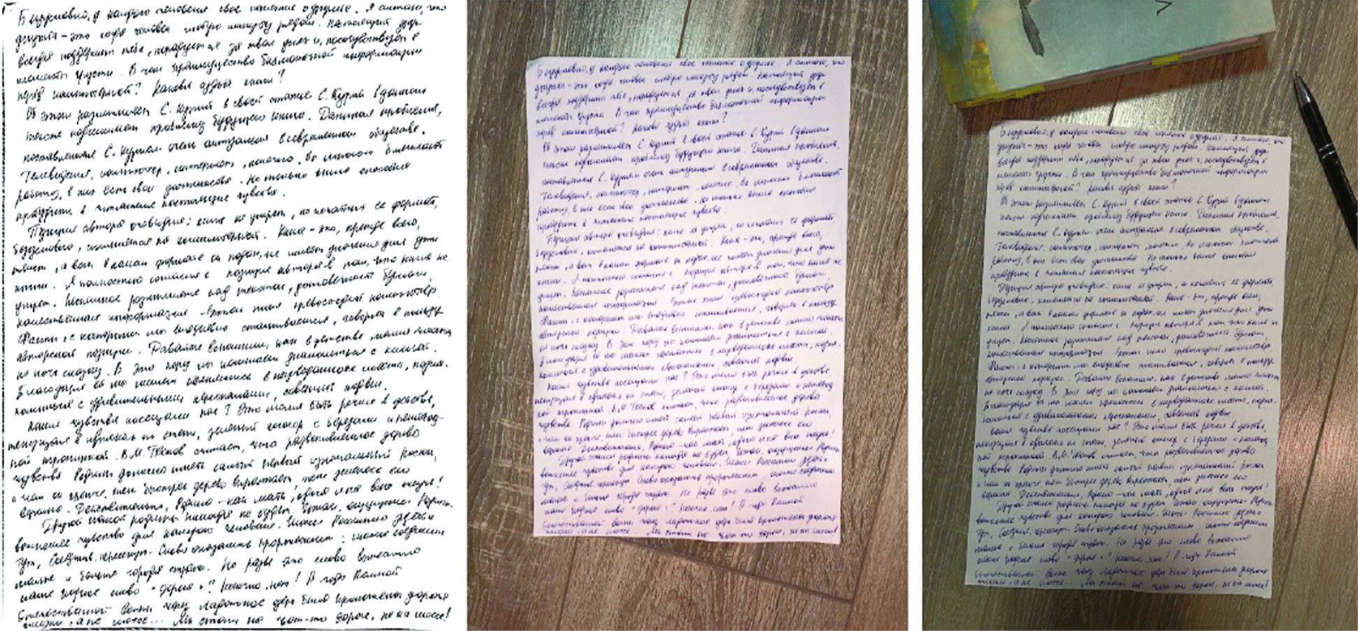 Рис. 2. Типы изображений из датасета HWR200 слева направо: скан, светлая фотография и темная фотография