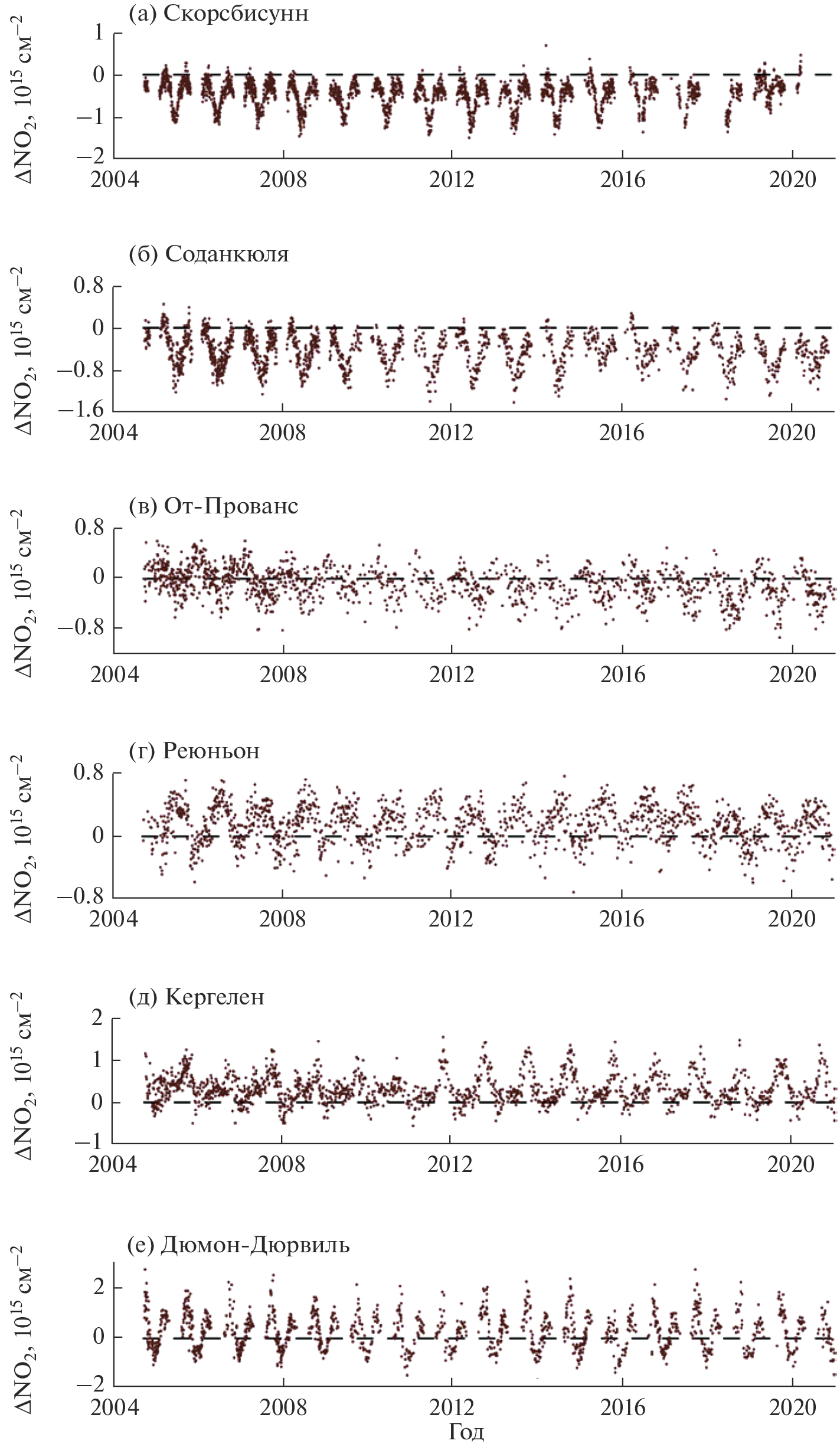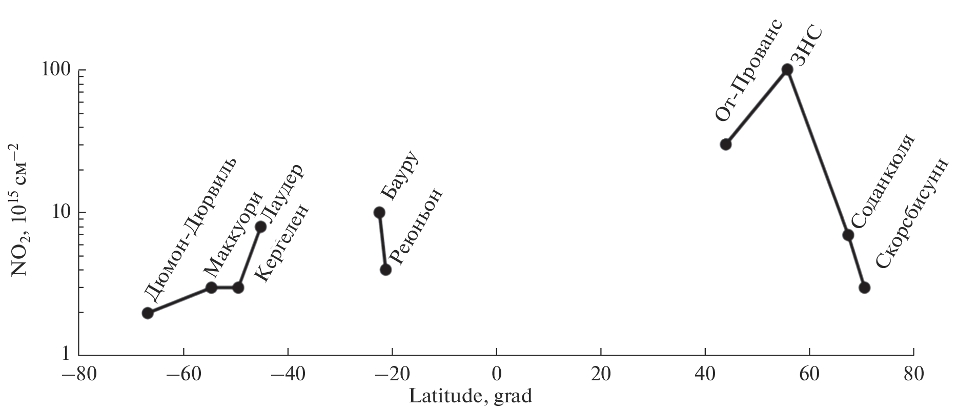 - Johnston P.V., McKenzie R.L. NO2 observations at 45oS during the decreasing phase of solar cycle 21, from 1980 to 1987 // J. Geophys. Res. V. 94. № D3. P. 3473–3486.