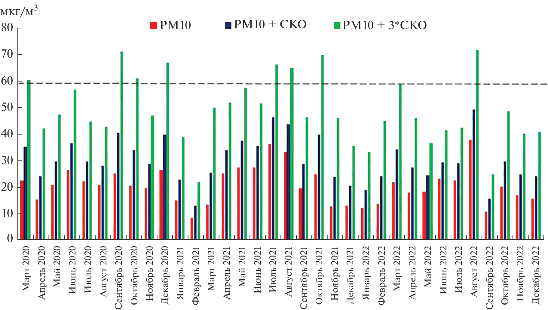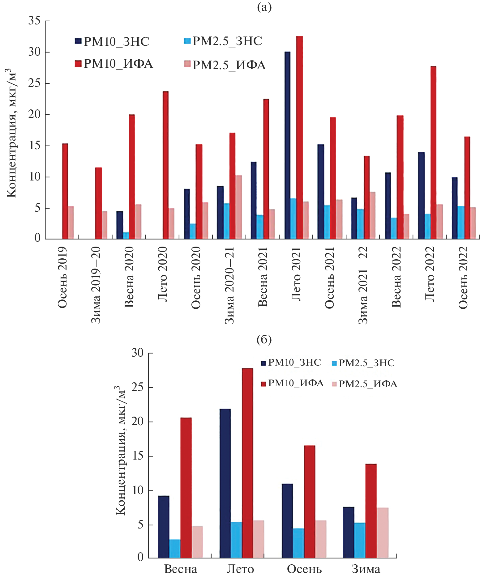 The data of continuous observations of aerosol composition in the near-surface atmosphere in Moscow (in the city center) and in Moscow region (near Zvenigorod, Moscow region) for three years, from autumn 2019 to the end of 2022, are analyzed. The obtained data were compared with the results of observations on the Moscow network stations “Mosecomonitoring”. The concept of conditionally background aerosol pollution of the atmosphere in Moscow is introduced for those days when the average daily concentration of PM10 is less than the MPC value (60 µg/m3). Previously, the authors found that all episodes of increased aerosol pollution in Moscow with daily average PM10 concentration higher than the MPC value, are associated either with the presence of a close local source in the city itself, or with the long-range transport of fire aerosols and/or dust from other territories to the Moscow region. The average daily PM2.5 concentration in the city and the suburb is lower than the MPC (35 µg/m3) all year round. The days corresponding to the introduced conditional background make up more than 91% over three years in the center of Moscow. Such a conditional background is formed by both natural and anthropogenic sources of aerosols, and not only of local, but also of remote origin. It implicitly takes into account the influence of meteorological conditions on sources and sinks of aerosols, as well as advective air mass transport of aerosol to and from the city. Seasonal variations in mass concentration of PM10, PM2.5 particles and individual chemical elements, as well as in the distribution of chemical elements by the size of aerosol particles in near-surface atmosphere under conditionally background pollution are analyzed. The emphasis is placed on the similarity and difference in the conditionally background near-surface aerosol for the city and the suburb in different seasons.