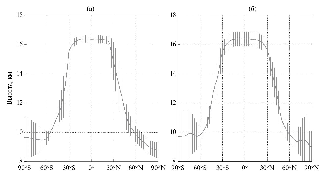 Разработка метода вычисления высоты тропопаузы выполнена за счет гранта Российского научного фонда № 23–62–10043. Результаты анализа данных выполнены за счет средств субсидии по госзаданию Института физики атмосферы им. А.М. Обухова РАН (регистрационный номер проекта FMWR-2022-0014) с использованием результатов, полученных в рамках проекта РНФ № 24-17-00211.