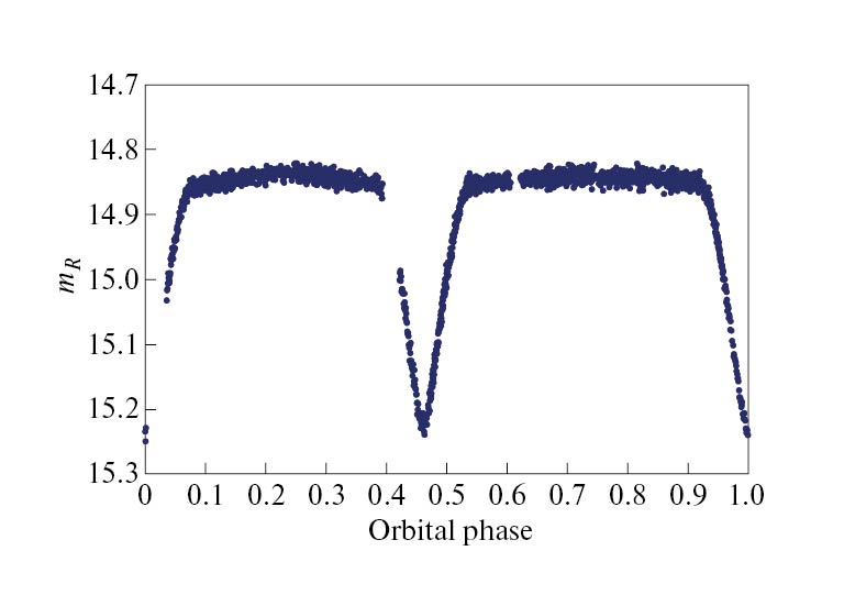 Для поиска фотометрических параметров и элементов орбиты мы применяем метод, изложенный в работах [9, 10]. Он использует данные кривых блеска на фазах минимумов и основан на поиске минимума функционала суммы квадратов уклонений.