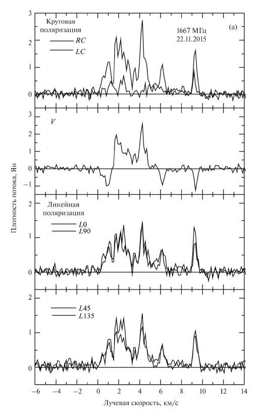 Рис. 13. То же, что на рис. 10, но для линии 1667 МГц в эпоху 20 ноября 2015 г.