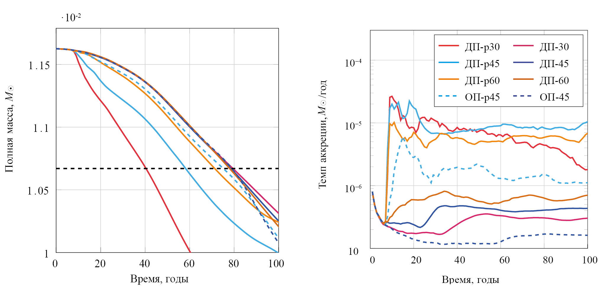 Отдельно отметим, что в данной работе не рассматривались процессы, связанные с переносом излучения (нагрев УФ-излучением от горячих областей звезды, охлаждение пыли). Также не учитывалась самогравитация диска: гравитационный потенциал Ф оставался неизменным в течение расчетов.