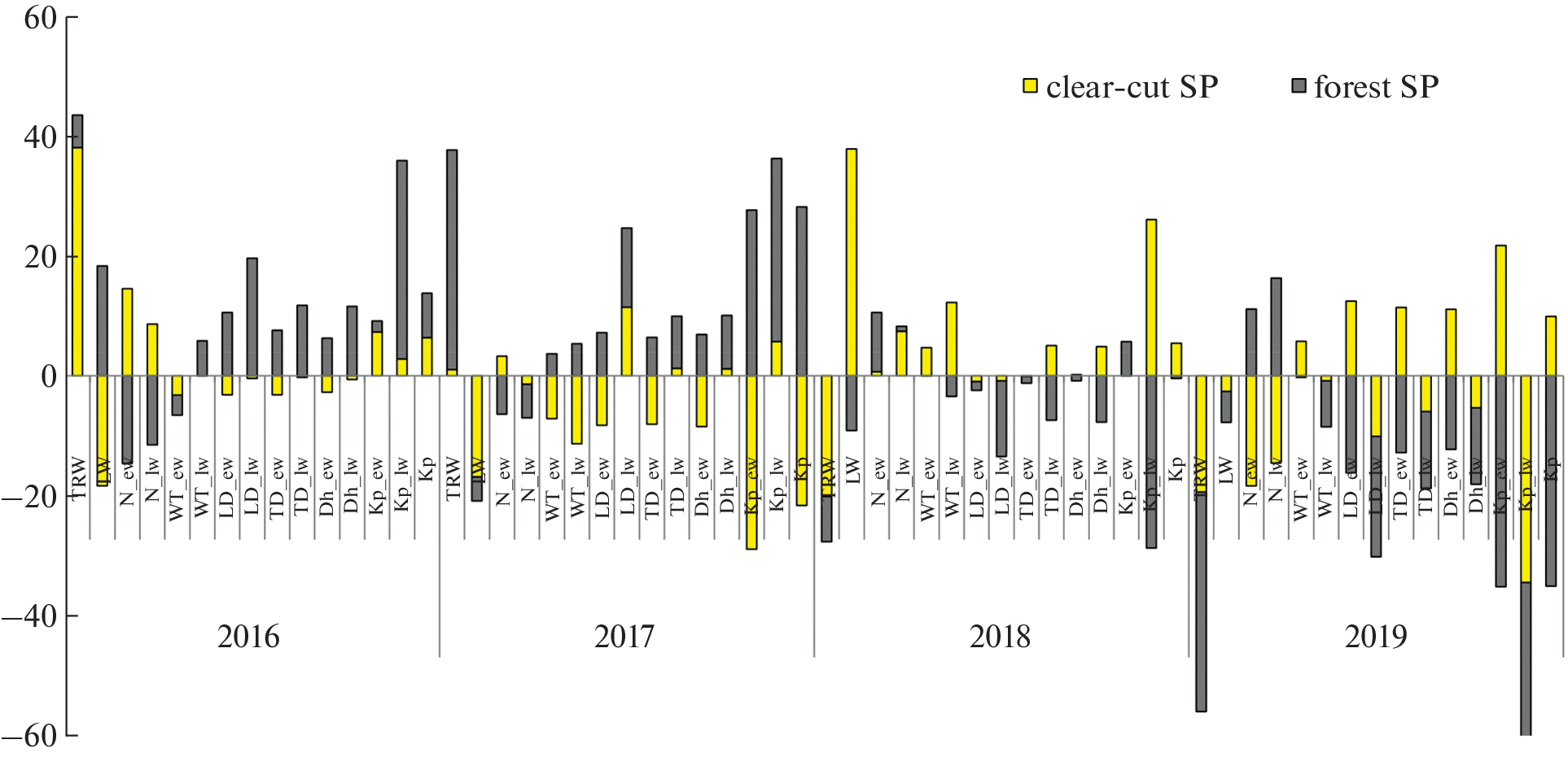 - Pridacha V.B., Sazonova T.A., Novichonok E.V., Semin D.E., Tkachenko Yu.N., Pekkoev A.N., Timofeeva V.V., Bakhmet O.N., Olchev A.V. 2021. Clear-cutting impacts nutrient, carbon and water exchange parameters in woody plants in an east Fennoscandian pine forest. – Plant Soil. 466: 317–336. https://doi.org/10.1007/s11104-021-05058-w