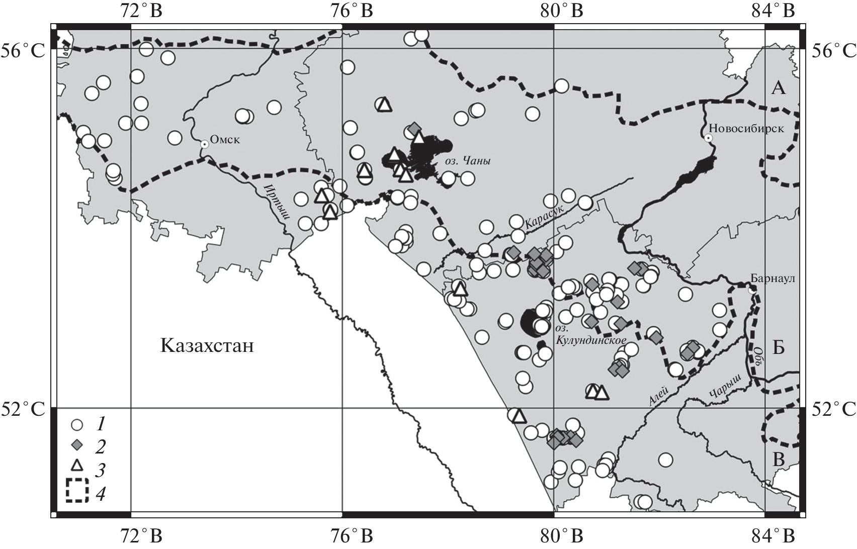 На основании 1415 геоботанических описаний, выполненных на юге Западной Сибири, проведен эколого-флористический анализ широко распространенных сообществ с участием или доминированием трех видов бескильниц: Puccinellia tenuissima (Litv.ex Krecz.) Pavlov, P. gigantea (Grossh.) Grossh., P. kulundensis Serg. С использованием программы PAST 4.03 (Hammer et al., 2001) по факторам увлажнения и богатства-засоления почв определена экологическая пластичность этих видов, а также выявлен их фитоценотический оптимум. Наибольшую пластичность по отношению к анализируемым факторам проявляет P. tenuissima, наименьшую – эндемик Западной Сибири P. kulundensis. В то же время P. kulundensis демонстрирует высокий доминантный потенциал: сообщества с ее господством – самые распространенные на юге Западной Сибири; реже других доминирует P. gigantea. С позиции флористической классификации сообщества с доминированием P. kulundensis отнесены к новой ассоциации Puccinellietum kulundensis ass. nov. из состава класса Festuco-Puccinellietea Soó ex Vicherek 1973, порядка Scorzonero-Juncetalia gerardii Vicherek 1973 и союза Cirsion esculenti Golub 1994.