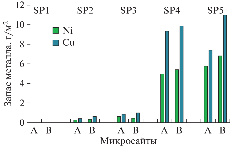 The paper presents the results of studying the distribution of stocks of potentially toxic elements (Ni, Cu) in subcrown spaces and “windows” of stands in medium-aged pine forests in the background area of the Kola Peninsula and that under environmental pollution by atmospheric emissions of the Severonickel Combine (Monchegorsk, Murmansk Region). On the basis of previously obtained data on the stocks of aboveground biomass of the components of the ground cover, mortmass of plant debris and forest litter and data of chemical analysis by means of atomic absorption spectrometry of leaves of dominant shrub species, aboveground parts of the moss Pleurozium schreberi (Brid.) Mitt, and lichen Cladonia stellaris (Opiz) Pouzar et Vězda, as well as plant waste and organogenic horizon (forest litter) of Al-Fe-humus podzols, Ni and Cu stocks in different components of forest ecosystems were calculated. It was found that the sharp decrease in atmospheric emissions by the Severonickel Combine over the last 20 years has not affected the level of habitat contamination, and the stock of heavy metals in the upper organogenic horizon of Al-Fe-humus podzols remains very high, especially in the impact zone, which does not even allow to start the process of restoration of the ground cover in this area. The stock of heavy metals in the plant waste consistently increases with the increase in the level of forest litter contamination when approaching the source of pollution, but the scale of this increase is significantly smaller in the mortmass compared to the litter. The pattern of distribution of heavy metal stocks in components of ground cover, plant waste and forest litter over the phytocenosis area is fundamentally different in background conditions and under aerotechnogenic pollution, which is due to differences in the accumulation of organic matter in different types of microsites. The ratio of Ni : Cu concentrations and stocks also differs in the soil-vegetation cover in pine forests of the background area and under the influence of aerotechnogenic pollution.