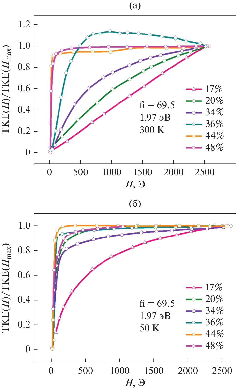 Nanocomposites (CoFeB)x(LiNbO3)100 – x with x = 17–48 at % have been synthesized by ion beam sputtering of a composite target comprised of Co40Fe40B20 and LiNbO3 onto silicon substrates, and the tran-sitions from the superparamagnetic state to the superferromagnetic and ferromagnetic states with an increase in the concentration of the magnetic component are studied by magneto-optical methods. The magneto-optical properties have been investigated in the geometry of the equatorial (transverse) Kerr effect (TKE). Magneto-optical spectra are recorded in the range of 0.5–4.0 eV in fields up to 2.5 kOe at 20–300 K, field and temperature dependences of the TKE at certain wavelengths are obtained, and the domain structure during magnetization reversal is visualized using a magneto-optical Kerr microscope. It is shown that the sample with x = 17 at % is superparamagnetic at temperatures above the blocking temperature (about 30 K). The interaction between the granules is considerable already at x = 20 at %, the transition to the superferro-magnetic state occurs at x ≈ 32–36 at %, and the transition to the ferromagnetic state occurs at x ≈ 44 at %near the metal–dielectric transition, i.e., at a concentration below the percolation transport threshold.