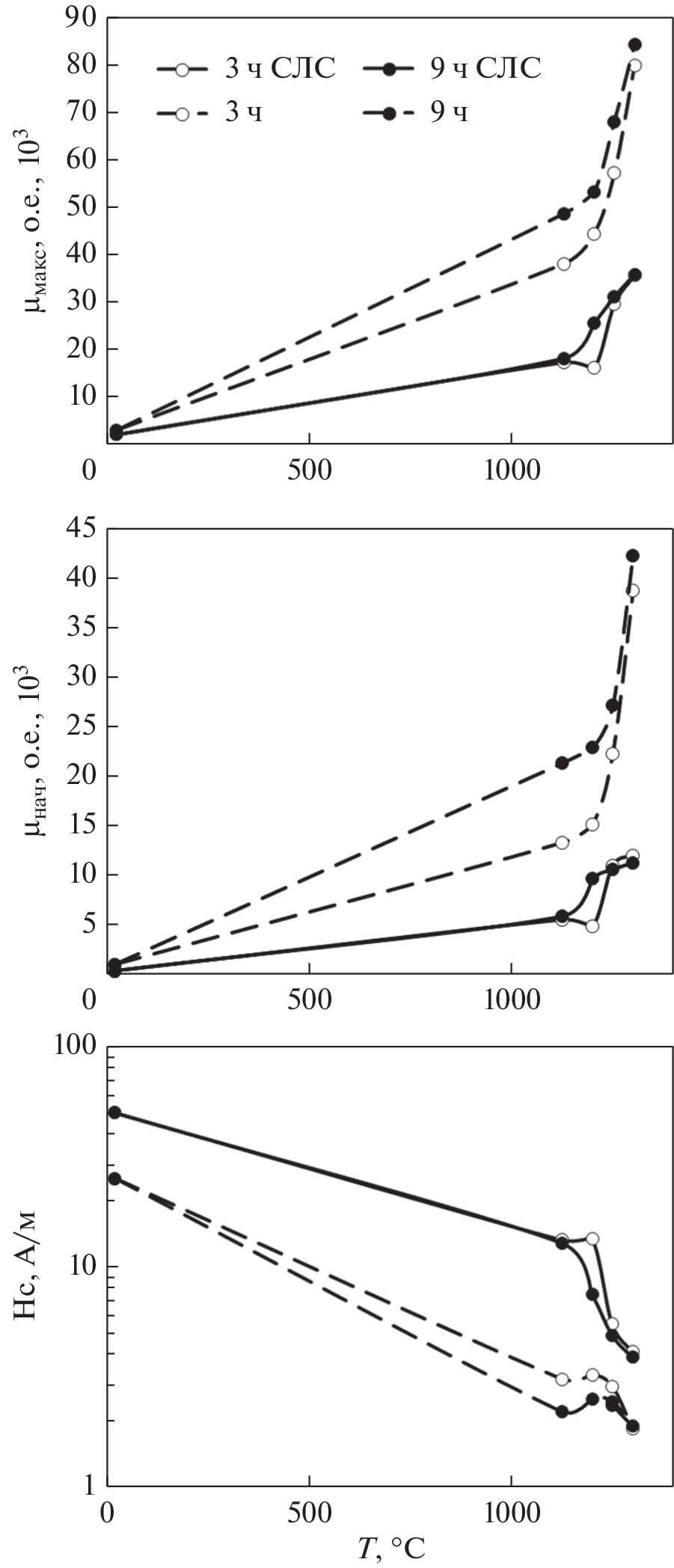 The effects of heat treatment on the structure and magnetic properties of the 80NHS grade permalloy produced by selective laser melting (SLM) of gas-atomized powder are presented in comparison with the properties of the rolled 80NHS alloy. Ring samples either produced by SLM or machined from rolled metal have been studied. It has been established that the magnetic properties of the SLM samples are inferior to the properties of samples produced by thermomechanical processing because the structure of the additively