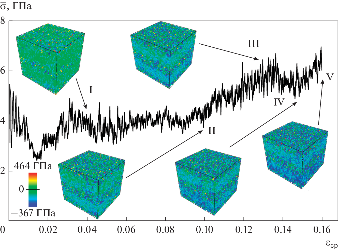 under compression combined with the shear deformation. Molecular dynamics tensile tests of the obtained