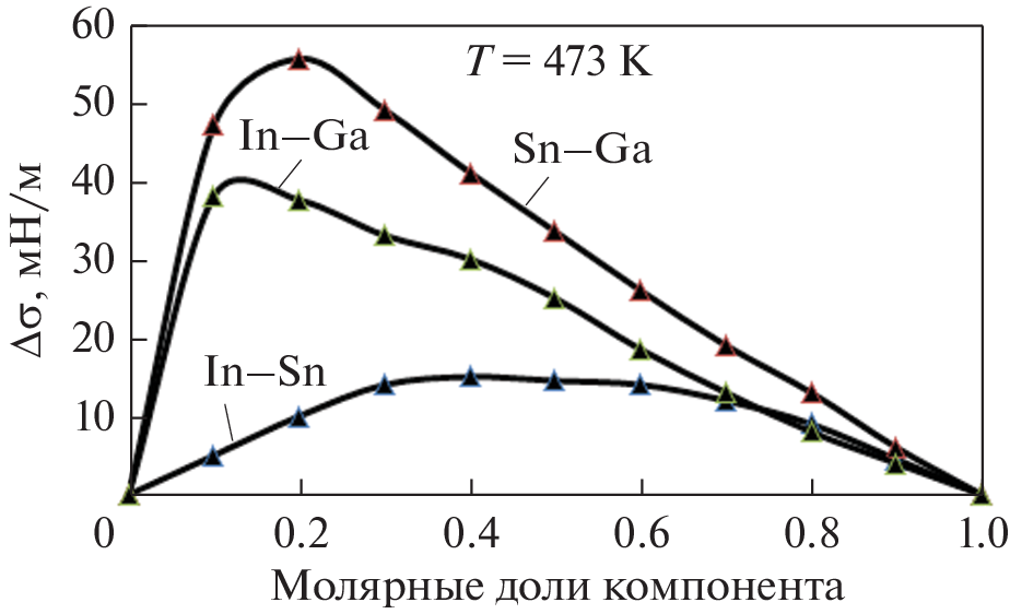 to the equimolar composition, and such systems are called asymmetric. It has been shown that a method based on the Kohler model rather precisely describes the concentration dependence of the surface tension of