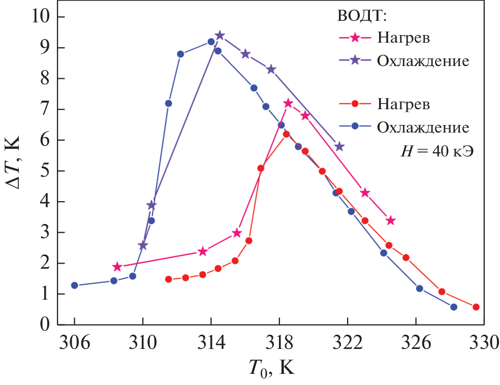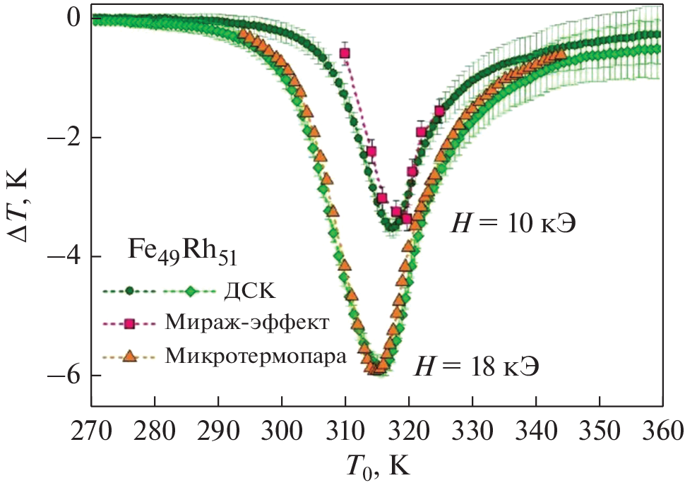 - Döntgen J., Rudolph J., Gottschall T., Gutfleisch O., Salomon S., Ludwig A., Hägele D. Temperature dependent low-field measurements of the magnetocaloric ΔT with sub-mK resolution in small volume and thin film samples // Appl. Phys. Lett. 2015. V. 106. № 3. P. 032 408.