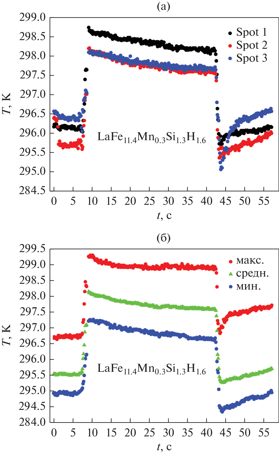 - Döntgen J., Rudolph J., Gottschall T., Gutfleisch O., Hägele D. Millisecond dynamics of the magnetocaloric effect in a first-and second-order phase transition material // Energy Technol. 2018. V. 6. № 8. P. 1470–1477.